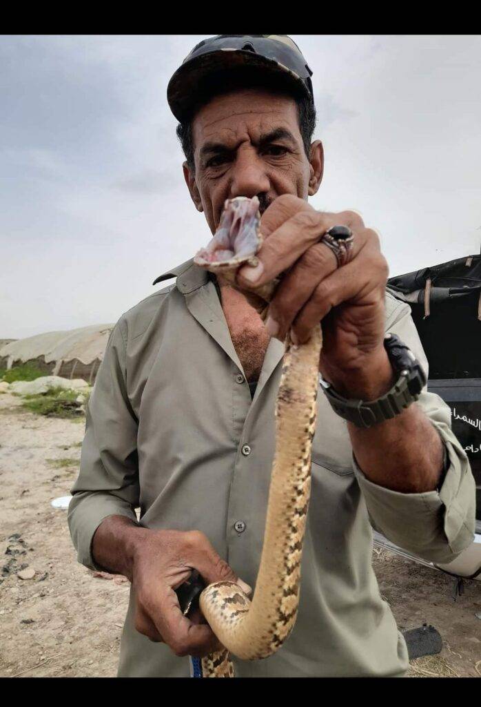 ويعتبر أن لديه الخبرة الكافية للتعامل مع جميع أنواع الأفاعي ويستطيع التمييز بين ماهو سام وغير السام منها.