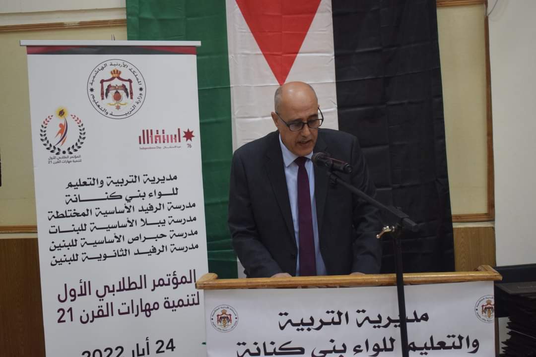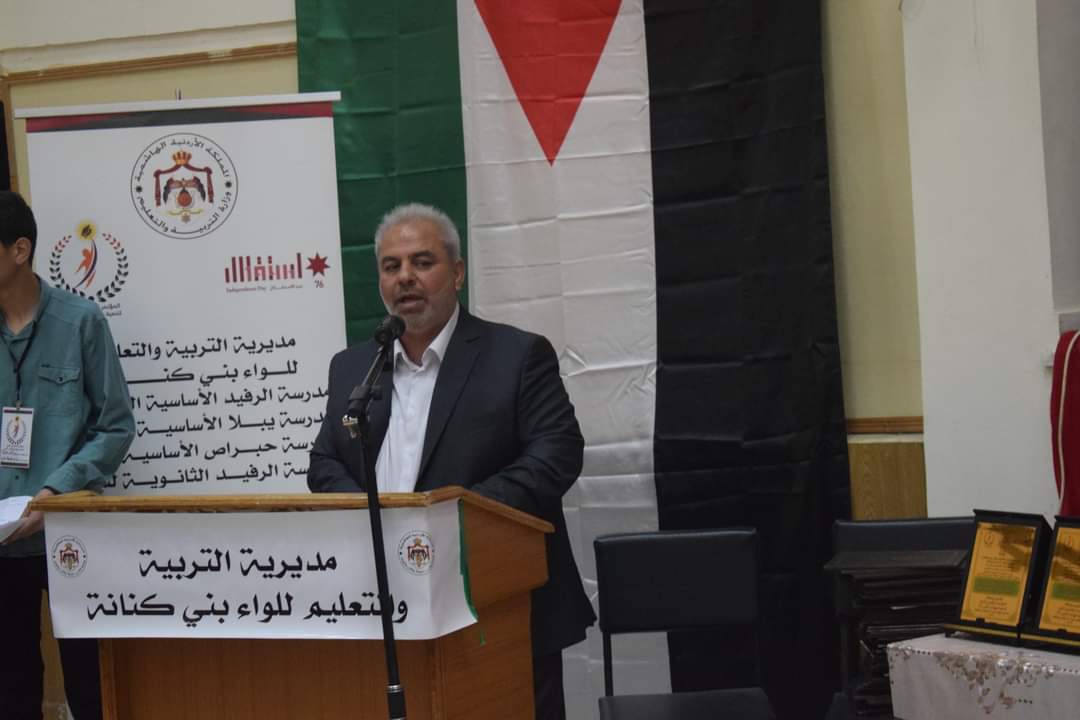 مدير التربية والتعليم للواء بني كنانة الدكتور عبدالله الشيـاب اكد في كلمة له ان الاردن وبقيادة صاحب الجلالة الهاشمية الملك عبدالله الثاني بن الحسين يولي التعليم الاهمية اللازمة وصولا الى التعليم المتميز وتجويد مخرجاته وكما جاء بالورقة النقاشية السابعة والعديد من الرسائل الملكية والتوجيهات الدائمة للحكومة , فهو السبيل الوحيد الى البناء والتنمية الشاملة والرقي والتقدم والازدهار . وبين الشياب ان تحقيق الاصلاح الشامل في الاردن  يرتبط بالنهضة التعليمية الحقيقية المبنية على قدرات بشرية تمتلك  مهارات القرن 21 في مختلف مناحي الحياة بكل كفاءة واحترافية ومسؤولية , وهذا يتطلب تكاتف جهود كافة الجهات المعنية لبناء قدرات الطلبة في مختلف المراحل الدراسية من خلال منظومة تعليمية سليمة  وناجعة وصولا الى  بناء مستقبل زاهر ومشرق للاردن .  واضاف ان ابراز دور القيادة الهاشمية في ايلاء التعليم الاهمية اللازمة وتسليط الضوء على انجازات المملكة الاردنية  الهاشمية في القطاع التربوي منذ تاسيس الدولة الاردنية في عام 1921 في عهد الملك المؤسس عبدالله الاول وصولا الى عهد الملك المعزز جلالة الملك عبدالله الثاني بن الحسين   , ونحن نحتفل بعيد الاستقلال 76 ,  يعد واجبا وطنيا ودينيا واخلاقيا ويعزز الثوابت الوطنية  و القيم الايجابية والمواطنة الصالحة  , وبهذه المناسبة لا بد ان نقول لكل العالم ان الاردن اليوم وبفضل القيادة الهاشمية التاريخية الفذة و الصلبة  والحكيمة اصبح في مقدمة الدول التي يشار لها بالبنان  في نهضة التعليم ومواكبة التحديات العصرية بادواته المعرفية الجديدة .
