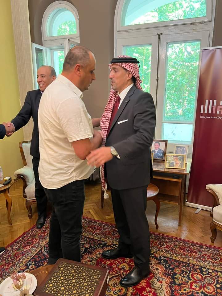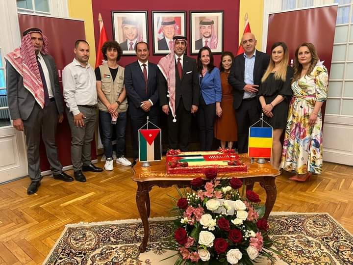 استقبل سعادة السفير سفيان سلمان القضاة، سفير المملكة لدى رومانيا، واركان السفارة، ابناء الجالية الاردنية في رومانيا والمهنئين بمناسبة عيد الاستقلال ال76 للمملكة الاردنية الهاشمية وذلك في مبنى السفارة (بيت الاردنيين).