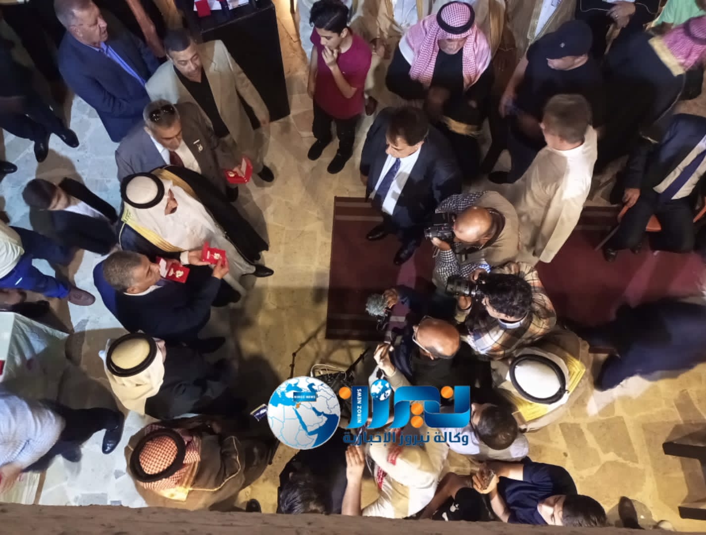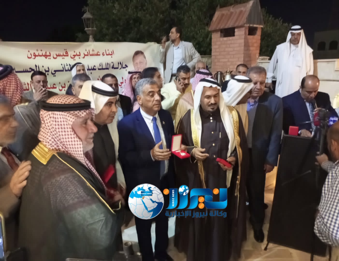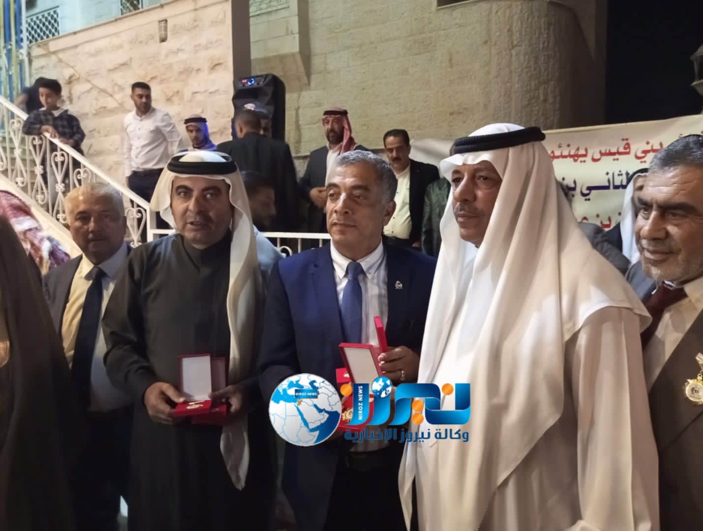 وفي ختام الحفل قام السفير عبدالله عفيشات والشيخ فايز الظهراوي بتكريم الحضور من الشيوخ والوجهاء بمدالية مئوية الدولة الأردنية