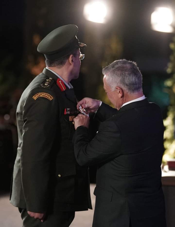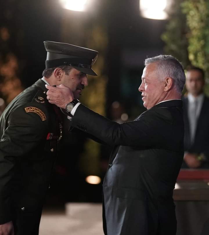 وأنعم جلالة الملك بوسام الملك عبدالله الثاني ابن الحسين للتميز من الدرجة الثالثة على المقدم الطبيب راكان أحمد اللوزي، تقديرا لمهنيته العالية وتميزه في إجراء عمليات معقدة بالمنظار لمعالجة الحالات المرتبطة بالانزلاق الغضروفي (الديسك).