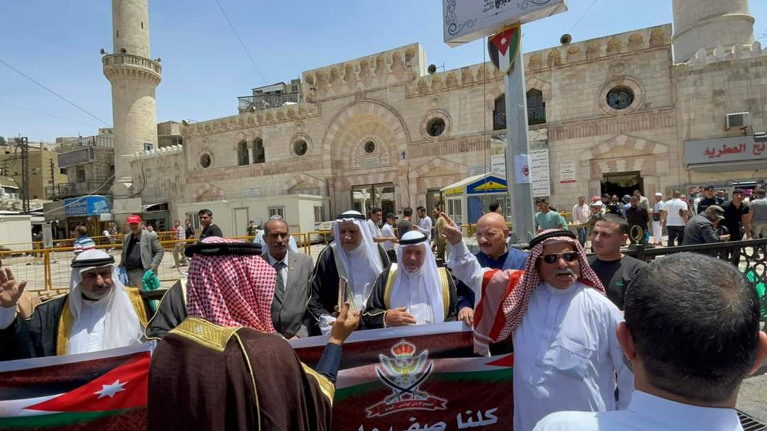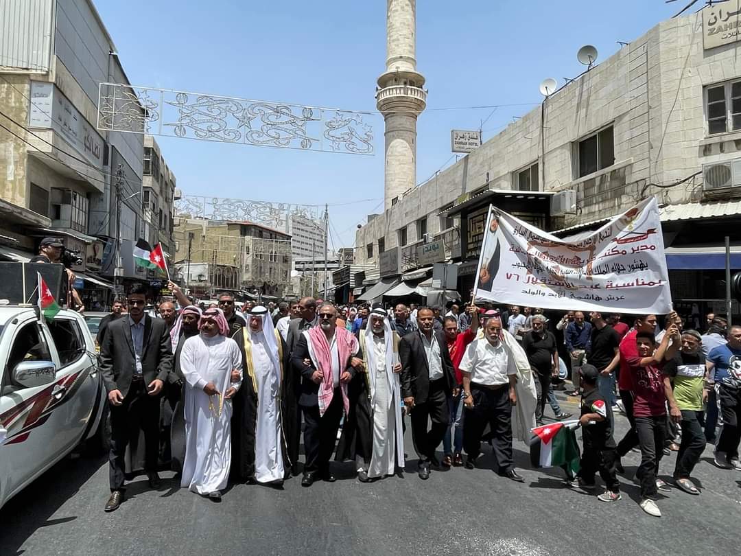 بتنظيم من التجمع الأردني المؤيد للنظام الهاشمي و بمناسبة عيد الاستقلال ال 76انطلقت اليوم الجمعة مسيرة سيرًا على الأقدام من أمام المسجد الحسيني باتجاه القصور الملكية العامرة لتجديد البيعة للوطن وقائد الوطن .
