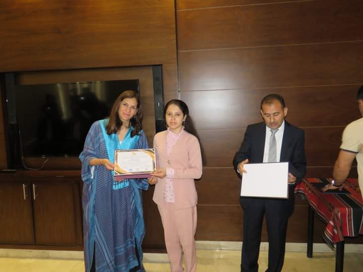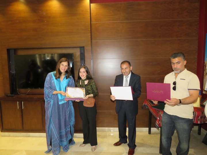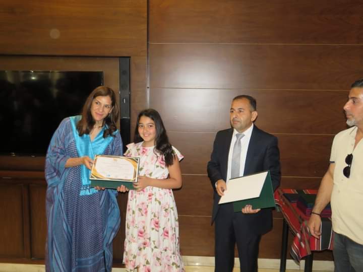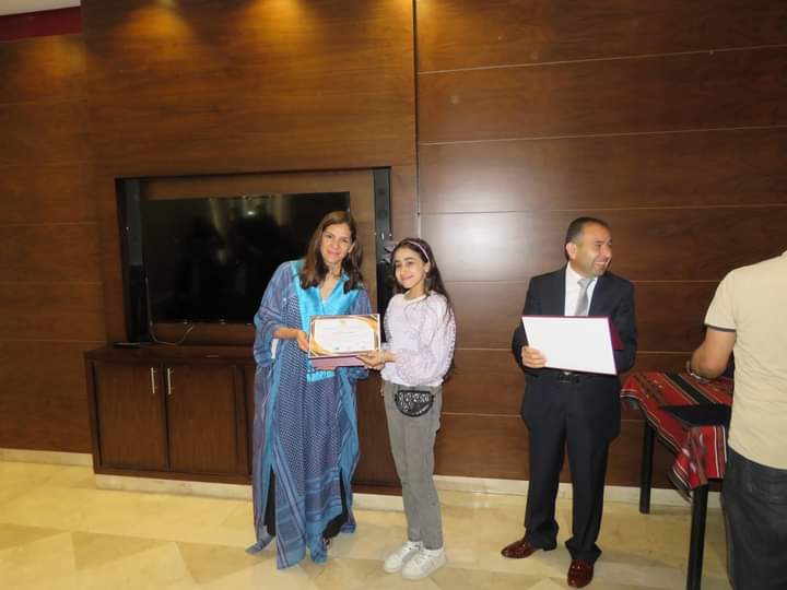وفي نهاية المعرض كرمت سمو الاميرة رجوة الاطفال المشاركين في المعرض.