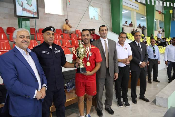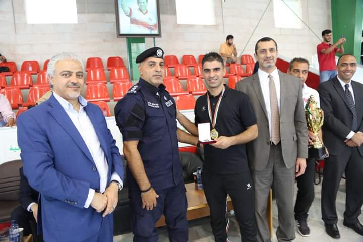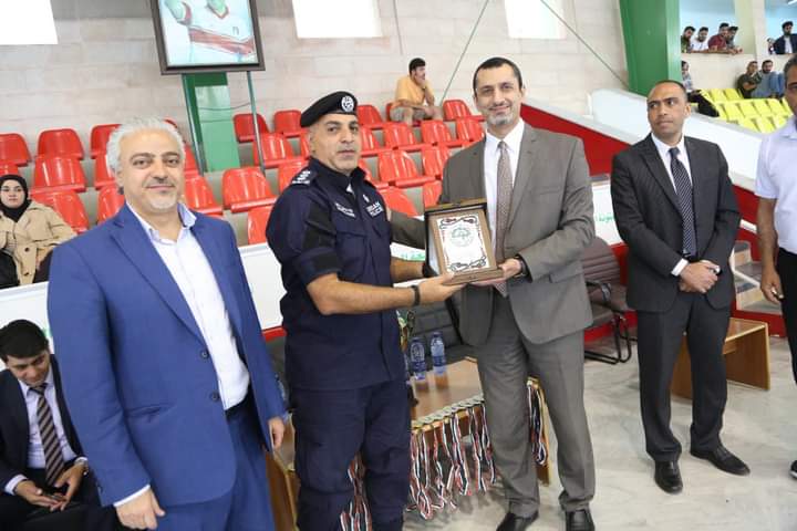 وفي نهاية الاحتفال توج مندوب رئيس جامعة الزيتونة الاستاذ الدكتور طارق القرم فريق الامن العام بالميداليات الذهبية وكاس المباراة .