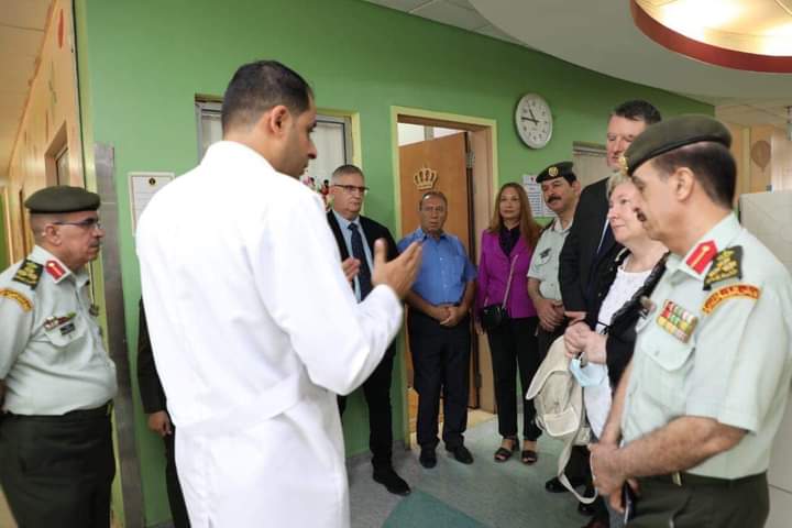واشتملت الزيارة على جولة ميدانية في أرجاء مستشفى الملكة رانيا العبدالله للأطفال حيث كان في استقبالهم مدير المستشفى العميد الطبيب حسين الخريشا حيث قام الوفد الضيف بالاطلاع على سير العمل اليومي في اقسام المستشفى .