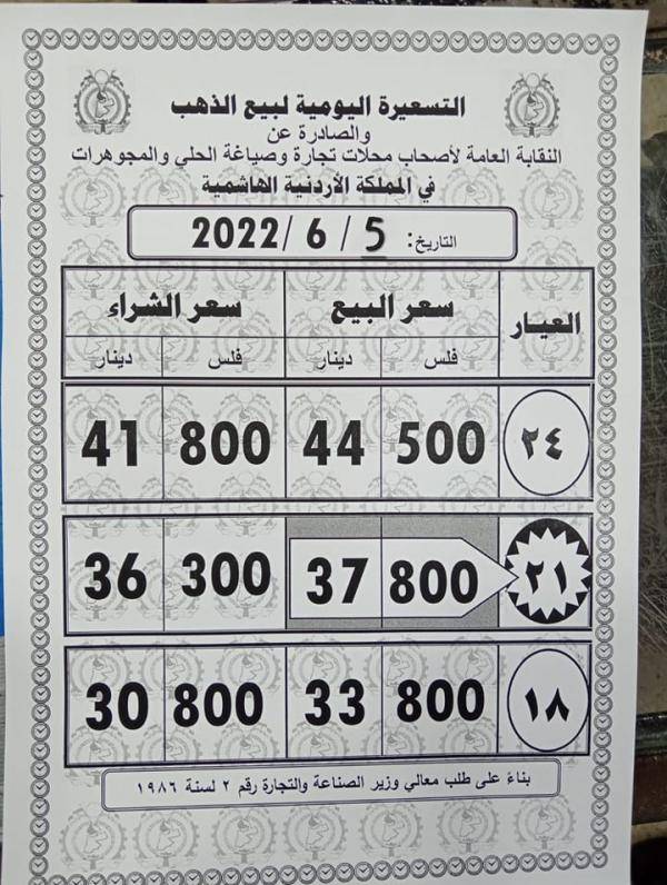 وبلغ سعر بيع غرام الذهب عيار 21 الأكثر طلبا في السوق المحلية 37،80 ديناراً، لغايات شراء المواطنين من محلات الصاغة، مقابل 36،30 دينارا لجهة البيع.