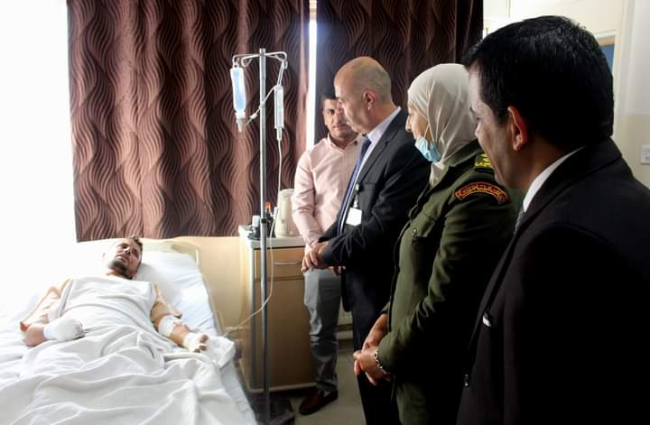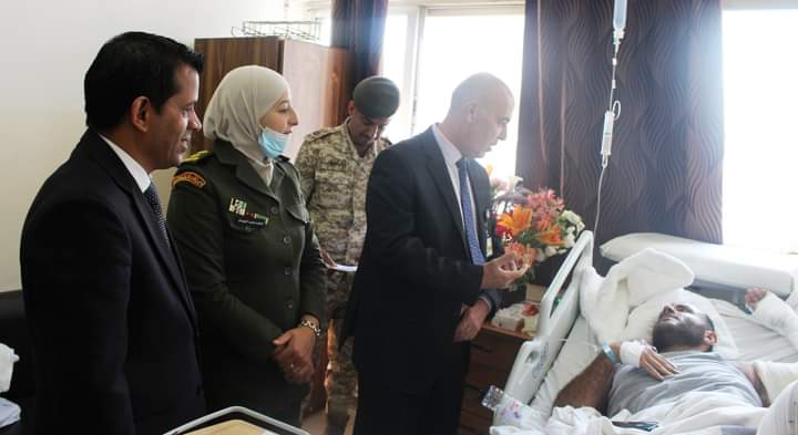 مدير الهيئة الهاشمية يعود مصابي واجب مالي ويطمئن على صحتهم