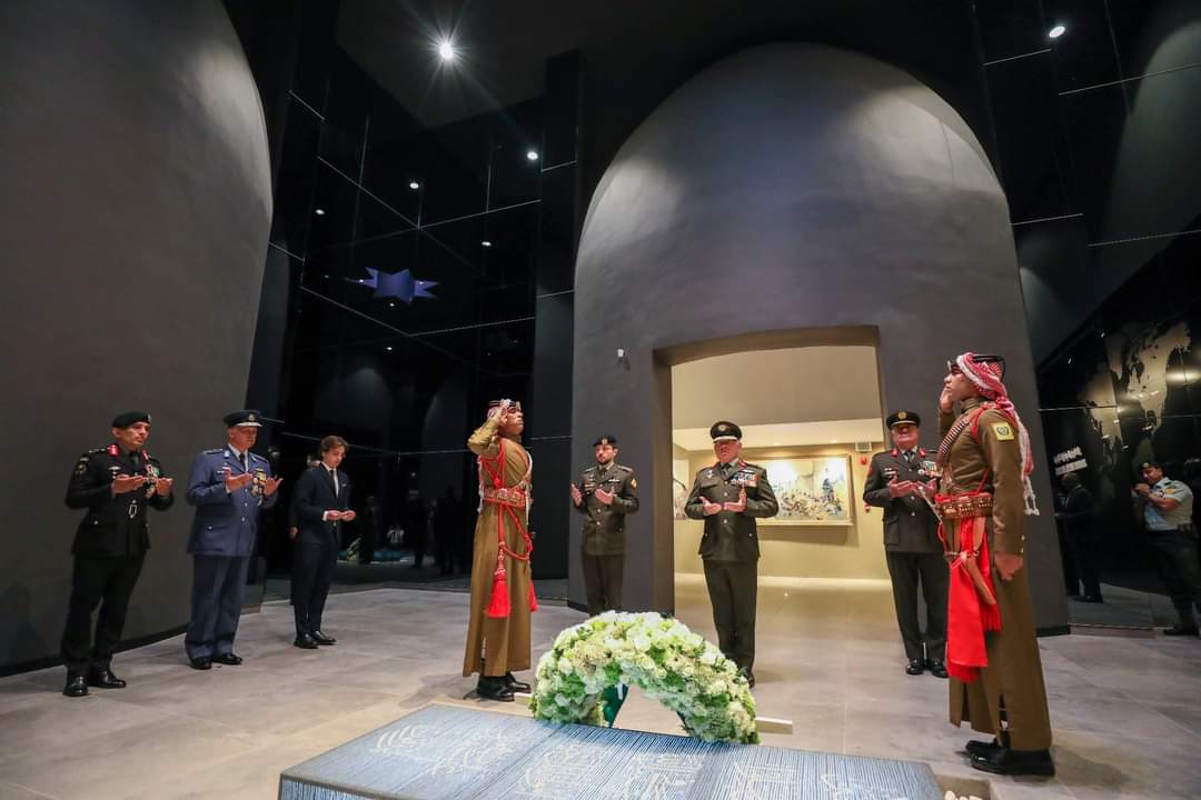 جلالة الملك عبدالله الثاني، القائد الأعلى للقوات المسلحة، يضع إكليلا من الزهور على ضريح الجندي المجهول في صرح الشهيد..