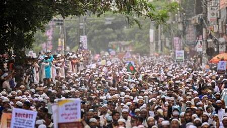 وشهد يوم الجمعة، أكبر تظاهرات شعبية حتى الآن ردًا على التصريحات، وقدرت شرطة بنغلاديش عدد المتظاهرين بأكثر من 100 ألف شخص في أنحاء البلاد بعد صلاة الجمعة.
