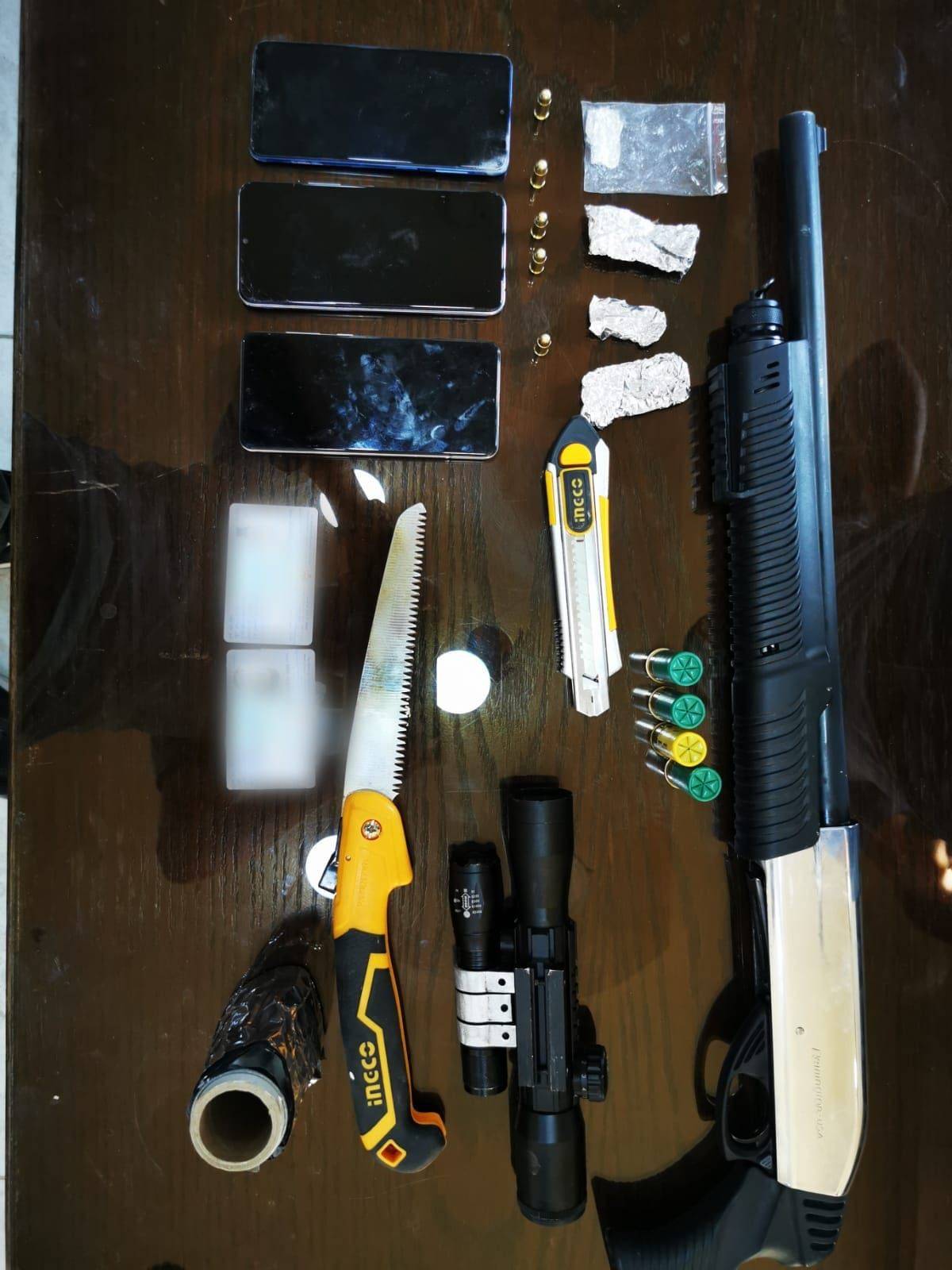 وفي القضية الثالثة تمكن العاملون في إدارة مكافحة المخدرات من إلقاء القبض على أحد الأشخاص المطلوبين وبحقه 17 طلباً ، وبعد تحديد مكان وجوده في محافظة البلقاء ، تمت مداهمته وضبطه وبحوزته 500 حبة مخدرة وكمية من مادة الحشيش وسلاحان ناريان.