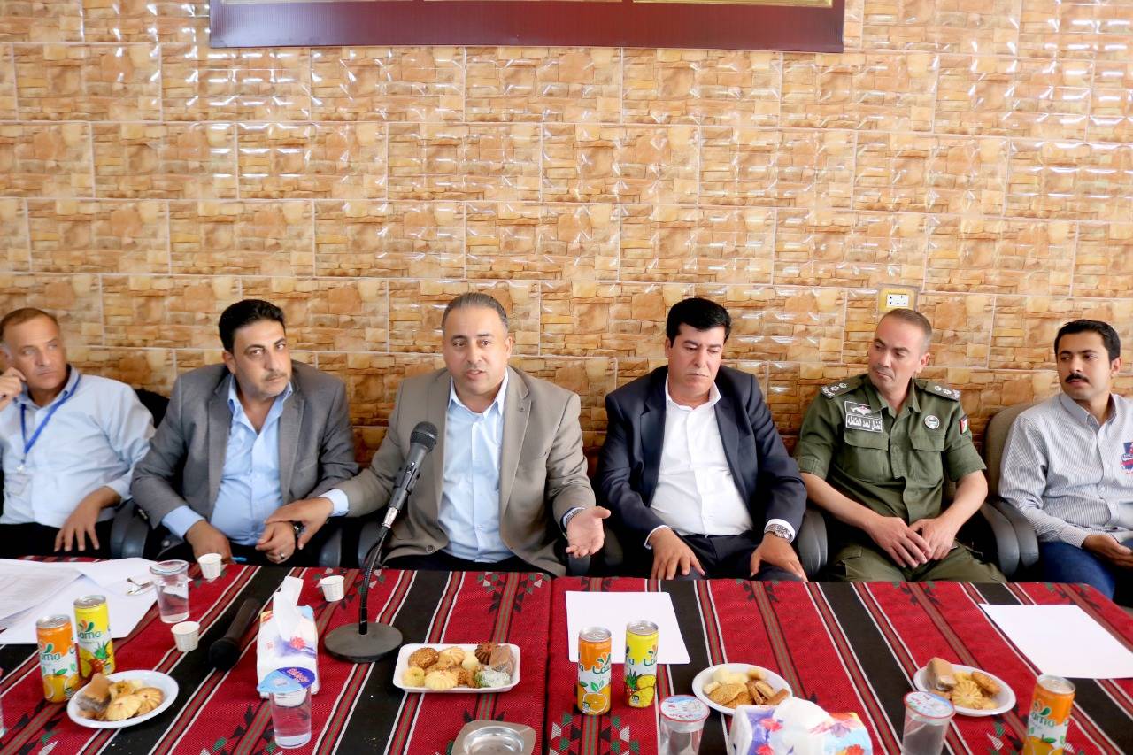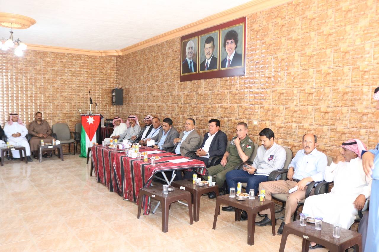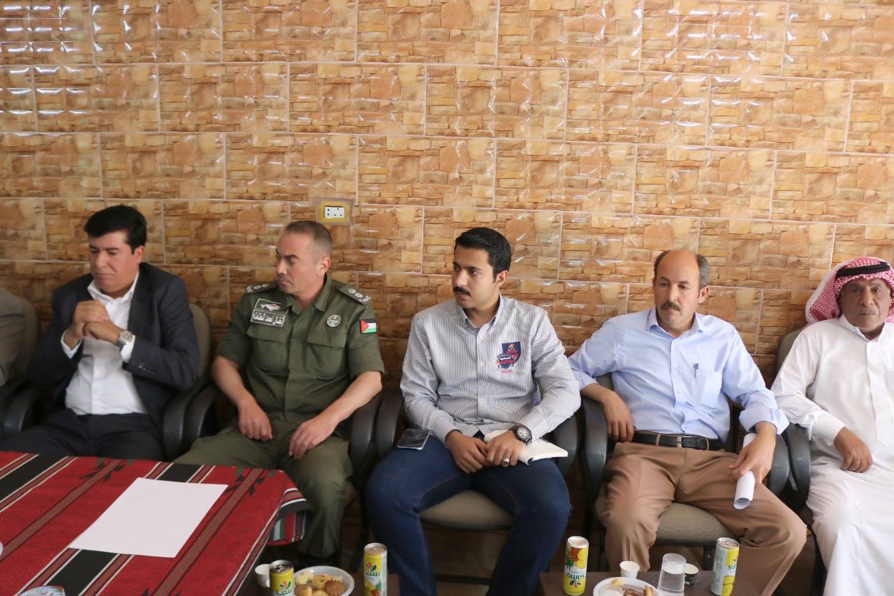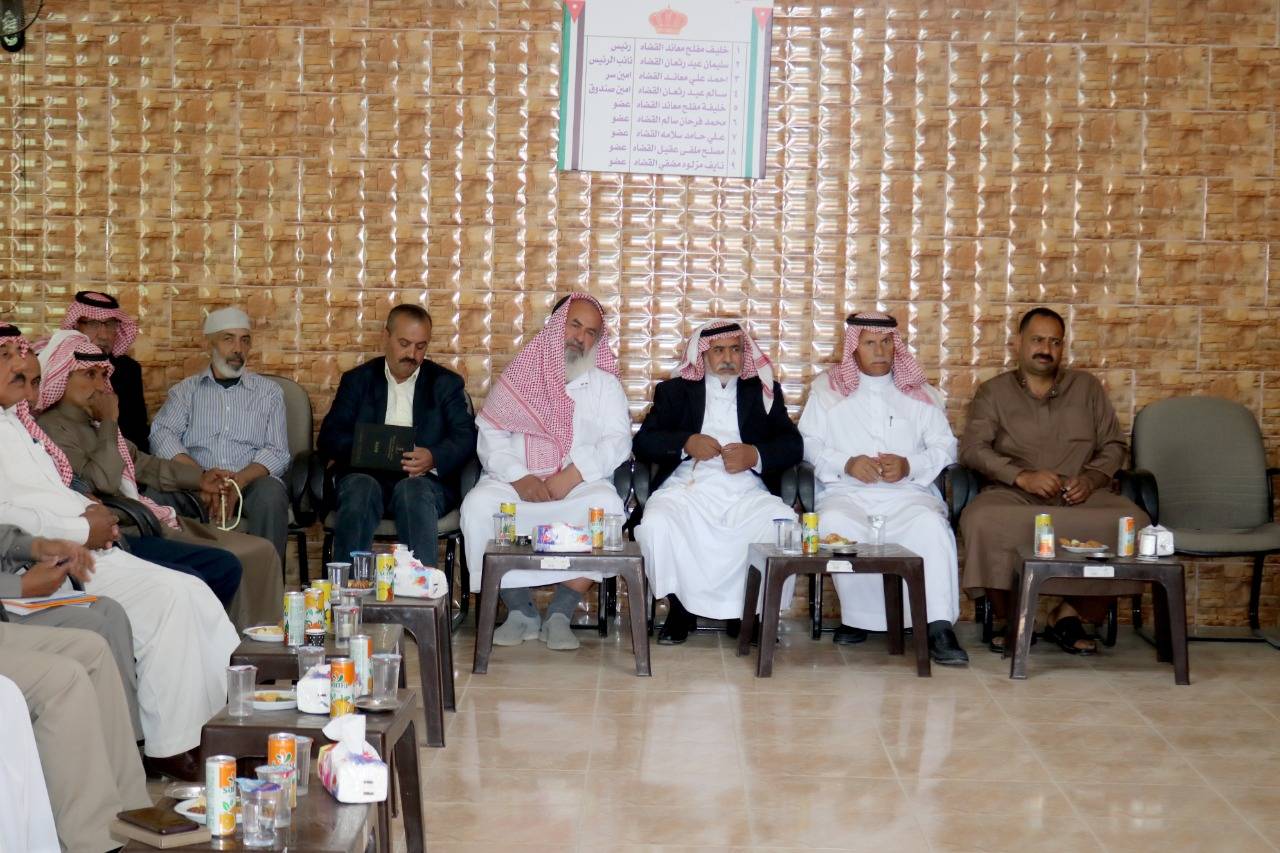 عقد متصرف لواء الموقر الدكتور فيصل مهدي السرحان يرافقه مساعده ومدير تنمية لواء الموقر ورئيس المركز الأمني في جمعية منشية القضاة اليوم الأربعاء اجتماعًا لمناقشة موضوع الجلوة العشائرية .