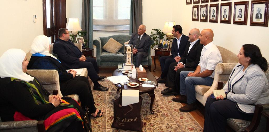 التقى رئيس الديوان الملكي الهاشمي يوسف العيسوي امس الخميس رئيس نادي خريجي الكلية العلمية الإسلامية أيمن حتاحت بحضور أعضاء الهيئة الإدارية .
