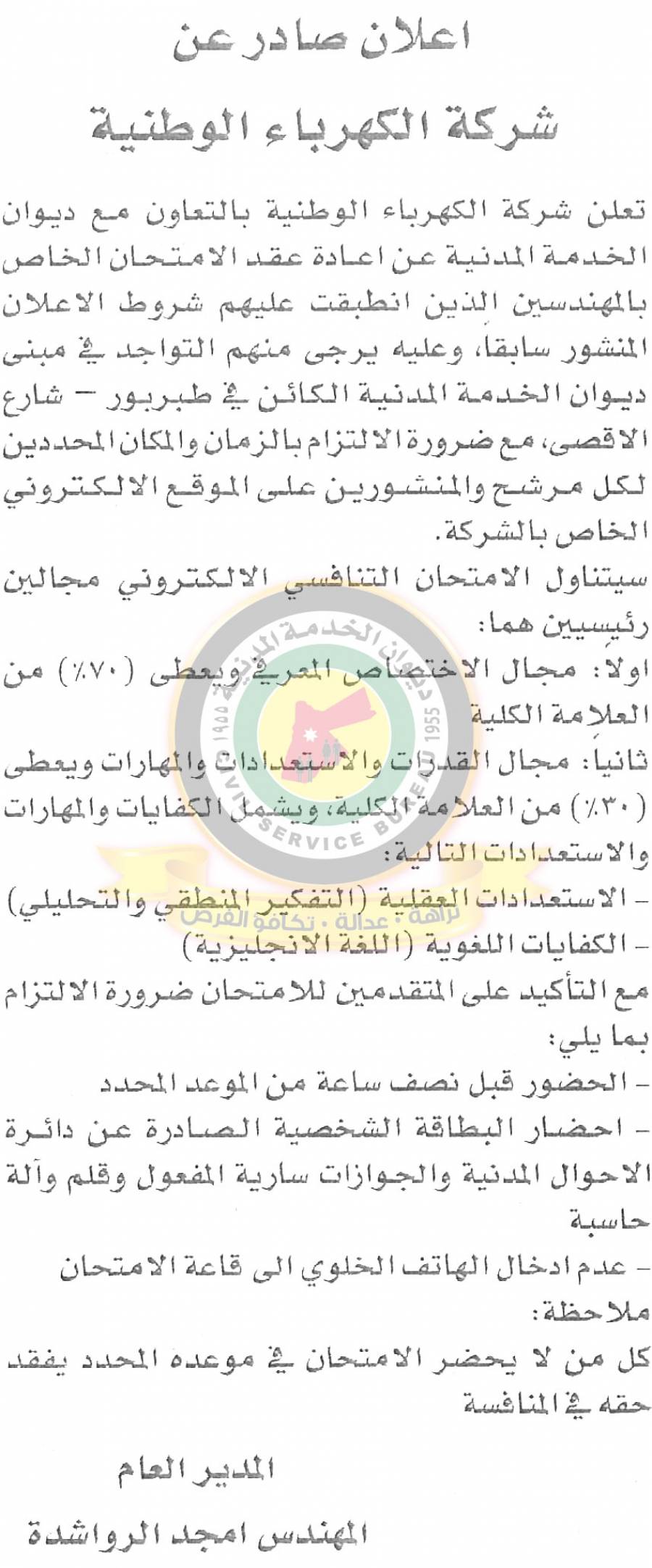 دعا ديوان الخدمة المدنية بالتعاون مع مختلف الوزارات والمؤسسات الحكومية، التالية اسماؤهم لاجراء المقابلات الشخصية وعقد الامتحان التنافسي لغايات التعيين.