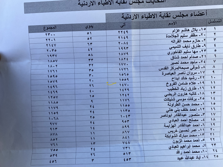 : اعلنت لجنة الاشراف على انتخابات نقابة الاطباء صباح السبت اسماء الاطباء الفائزين بعضوية مجلس نقابة الاطباء.