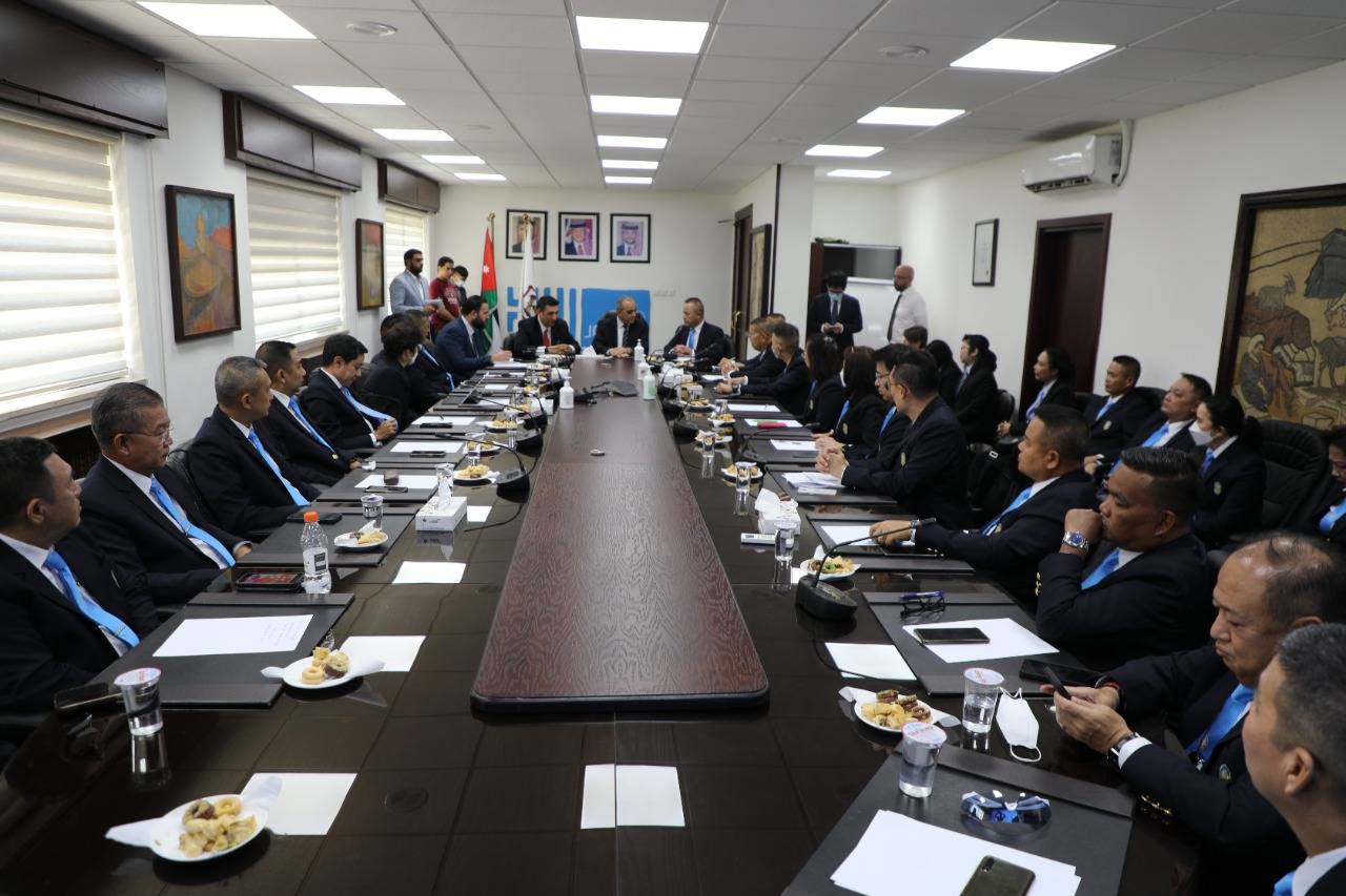 مدير مدرسة الدراسات الأمنية اللواء ساكسيت سانغشانينترا، قال إن هذه الزيارة للوزارة جاءت للإطلاع على خبرات الأردن المتعلقة بالترويج السياحي، وكيفية الحفاظ على المواقع المدرجة على قائمة التراث العالمي وإدارتها، مبدياً إعجابه بالبنية التحتية المتطورة بالأردن وما تتمتع به من أجواء طبيعية خلابة ومواقع سياحية وأثرية مميزة.