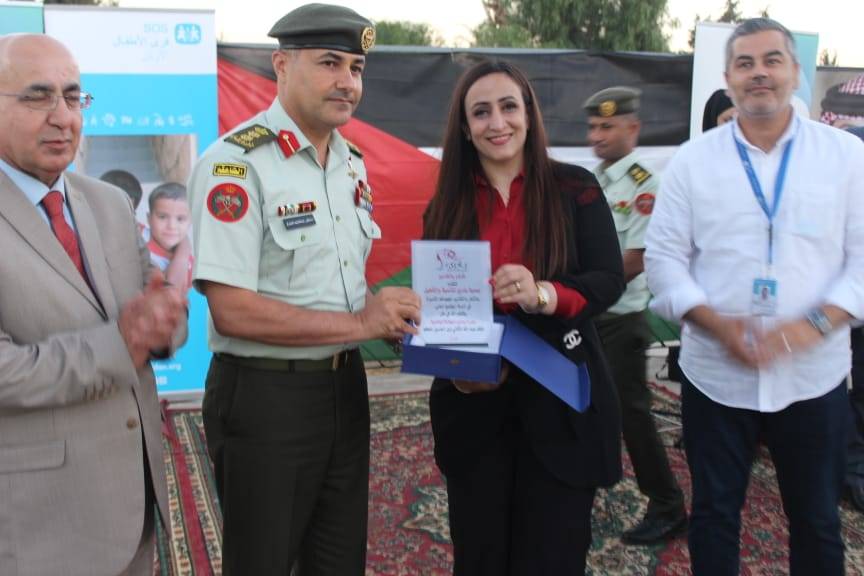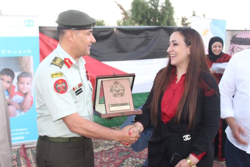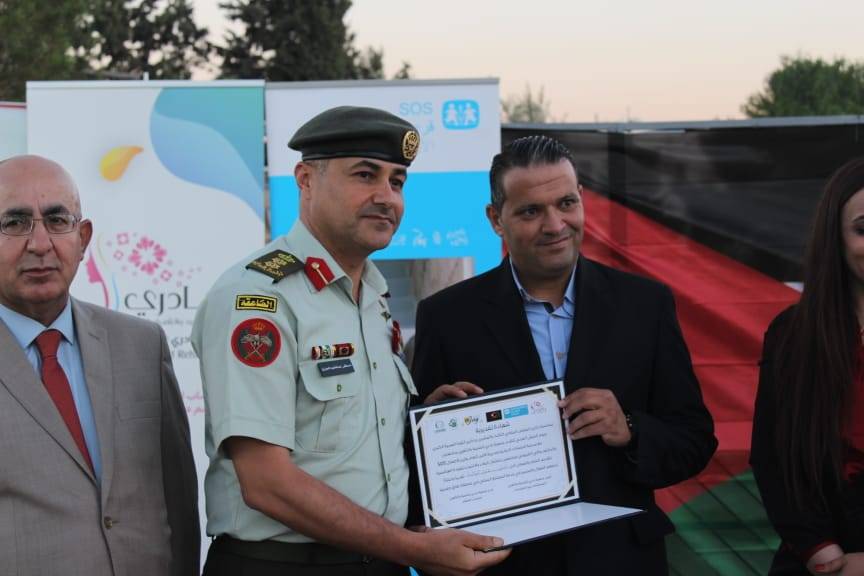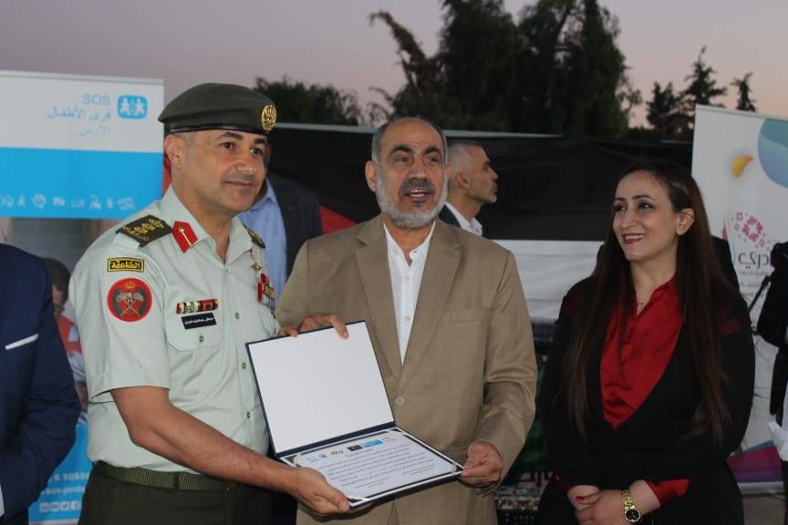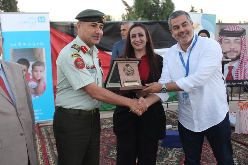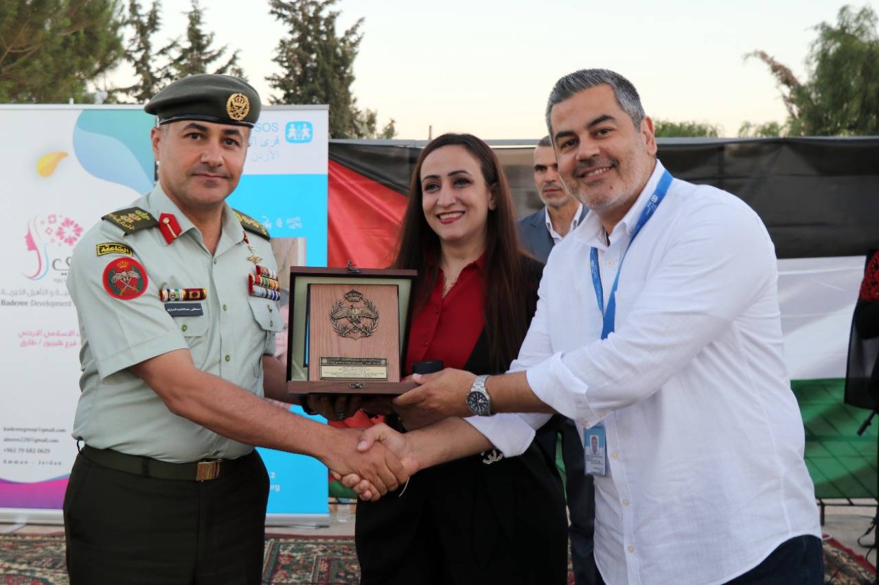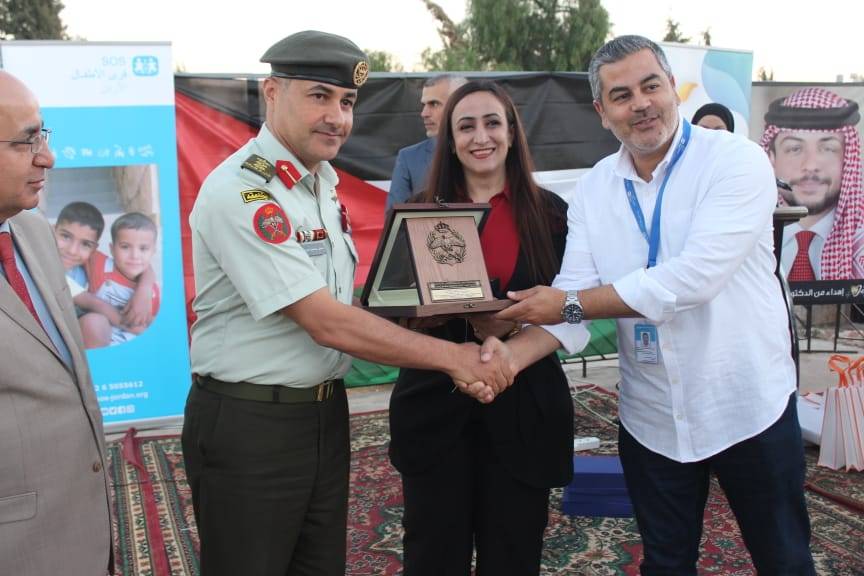 وقام مندوب رئيس هيئة الأركان المشتركة ، العقيد مصطفى الحياري بتقديم درعًا مقدمًا من القوات المسلحة الأردنية _الجيش العربي لجمعية بادري وقرى الأطفال sos.