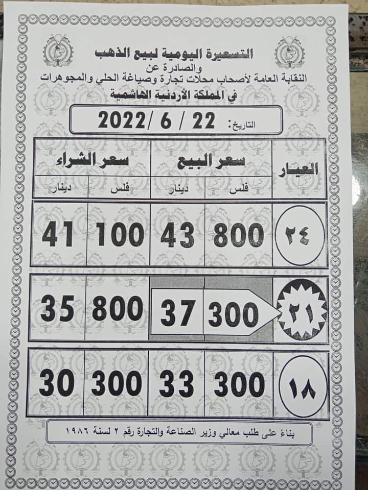 ويشمل التقرير أسعار المعدن في الاردن بجميع عيارته