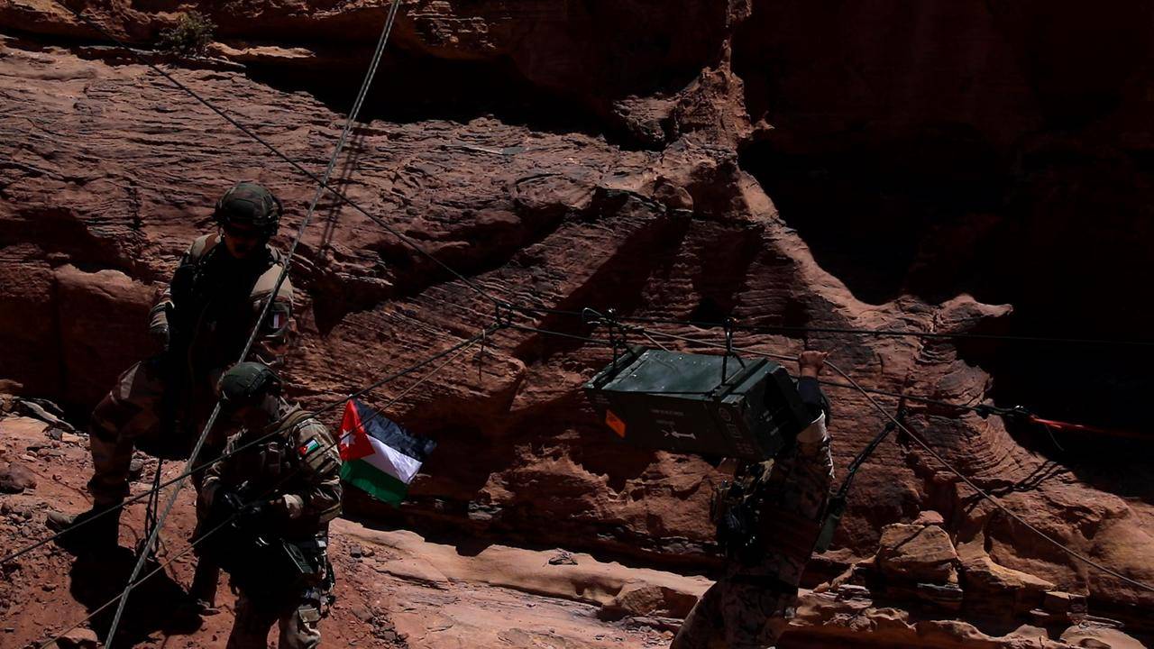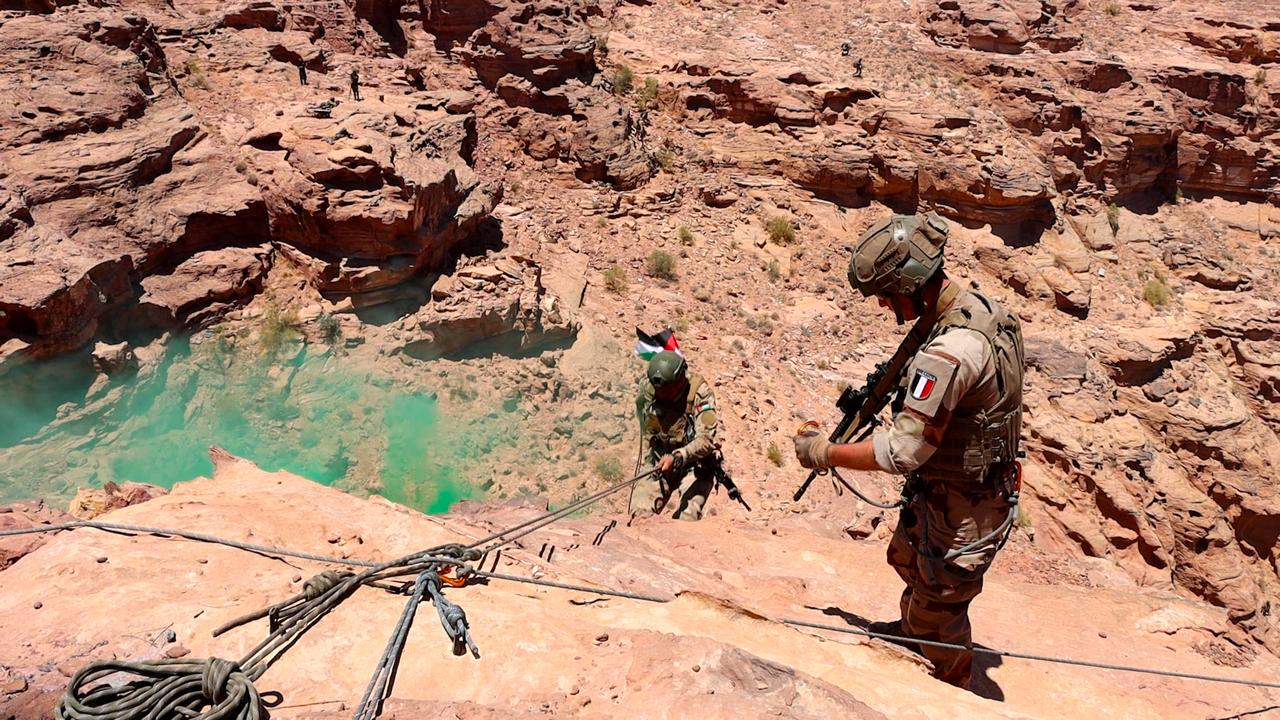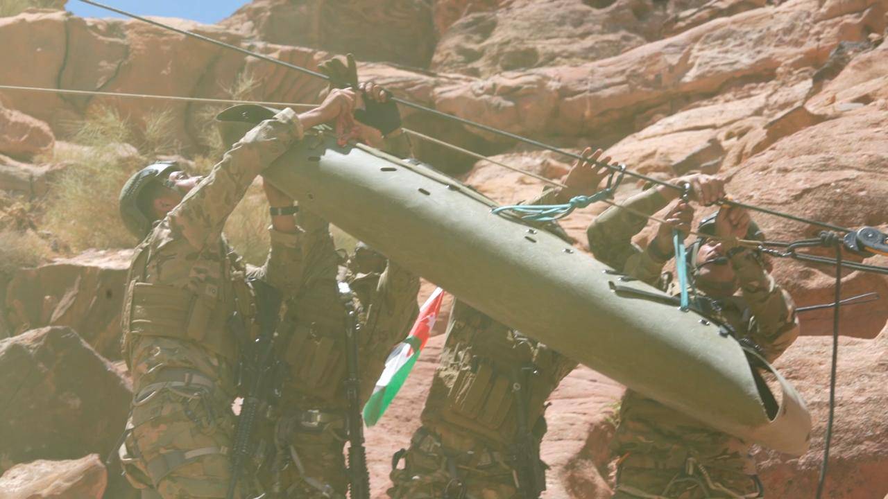 نيروز الإخبارية : نفذت كتيبة التدخل السريع المغاوير/61 احدى وحدات لواء سمو الشيخ محمد بن زايد آل نهيان تمريناً تعبوياً بمشاركة فريق من القوات الخاصة الفرنسية الصديقة اليوم الأربعاء، بحضور عدد من كبار ضباط القوات المسلحة الأردنية – الجيش العربي، والمندوبة الدبلوماسية للسفارة الفرنسية وعدد من الملحقين العسكريين.