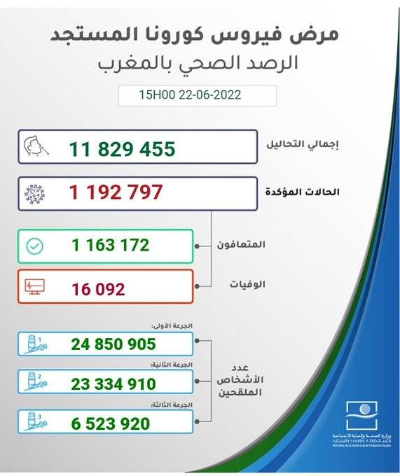 ورفعت الحصيلة العدد الإجمالي للمصابين بالفيروس إلى 1.192.797 حالة، والعدد الإجمالي للوفيات إلى 16.092 حالة.