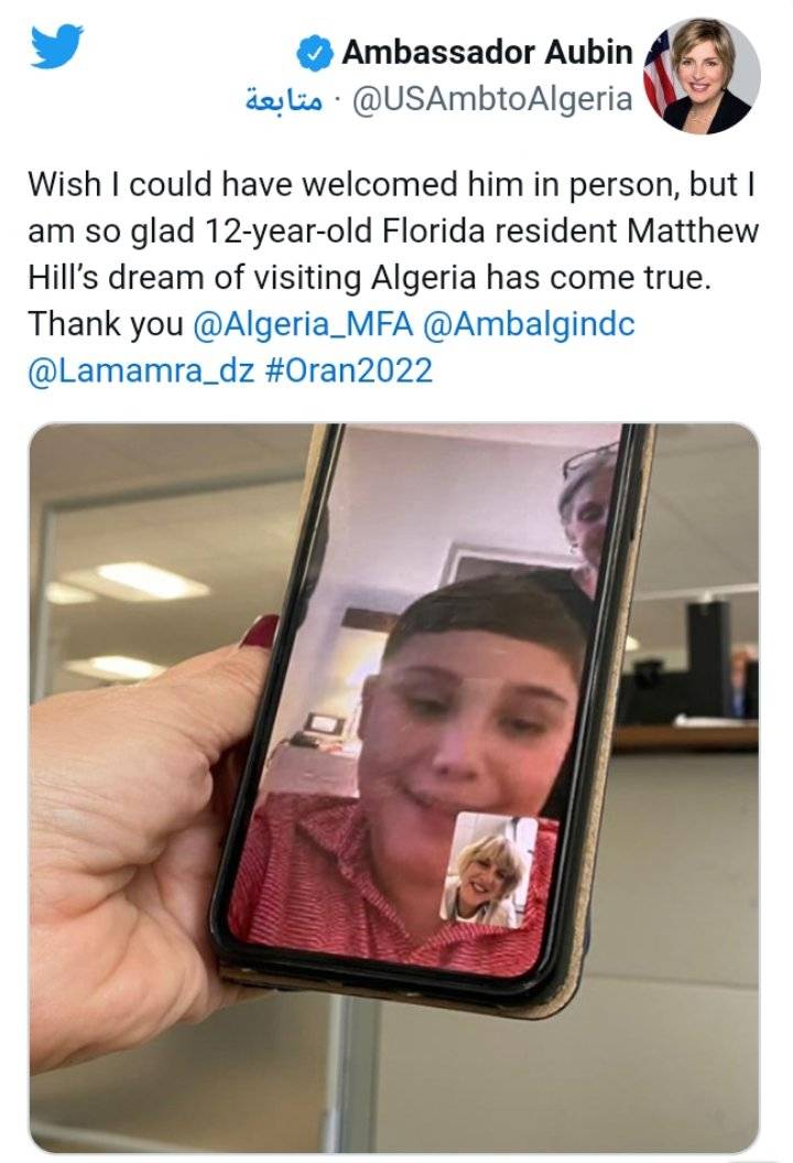 : عملت الجزائر على تحقيق حلم الطفل الأمريكي ماثيو هيل، البالغ من العمر 12 عاما، والقاطن بولاية فلوريدا.