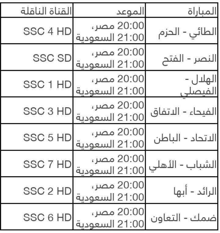 جدول مباريات اليوم في الدوري السعودي