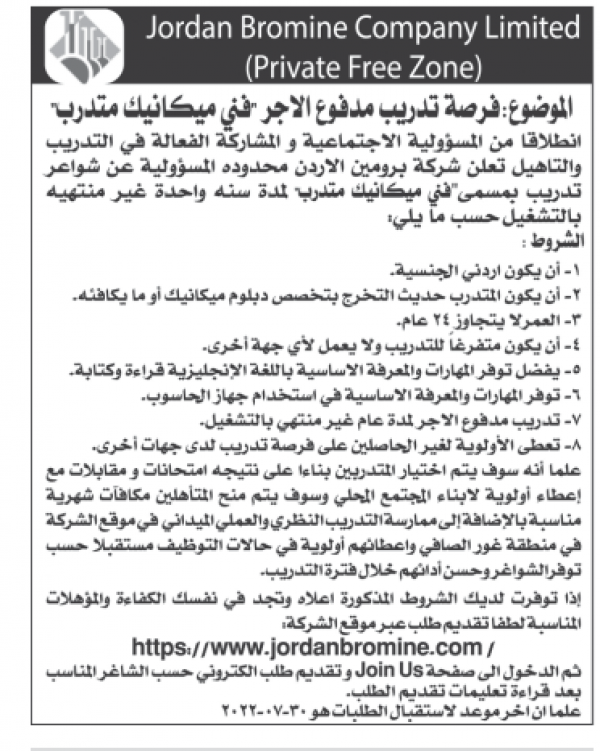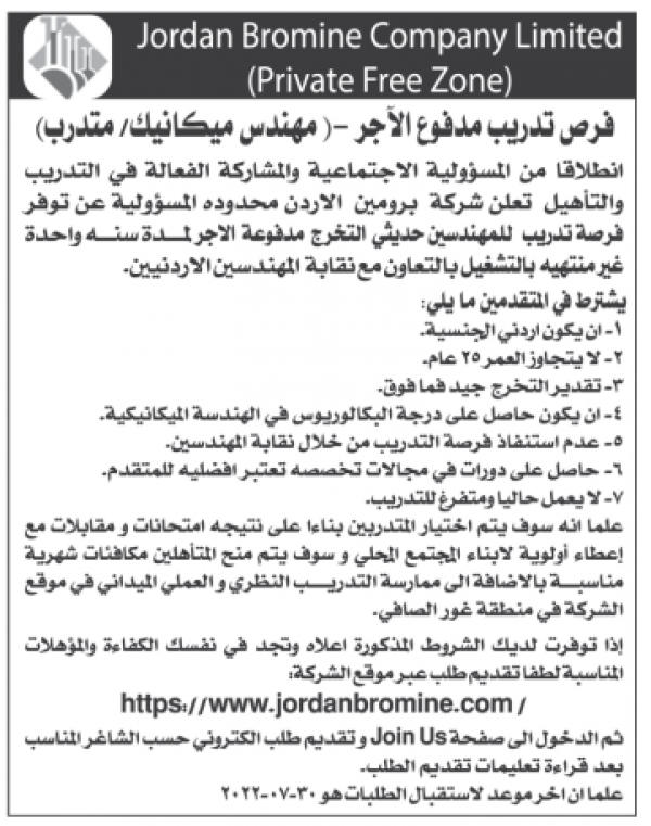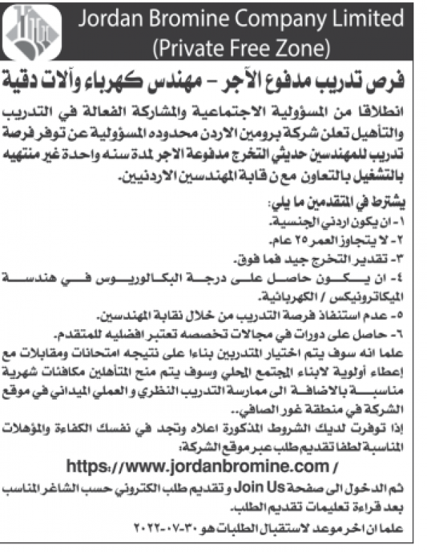 فرص تدربيبة مدفوعة الاجر لدى شركة البرومين