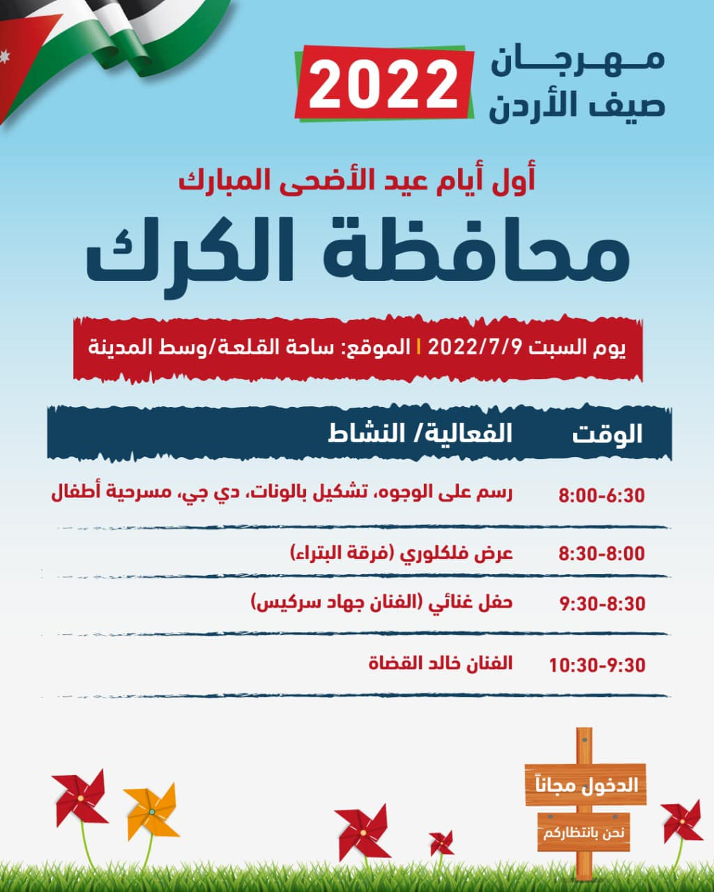 : أعلنت رئاسة الوزراء عن فعاليات مهرجان صيف الاردن خلال ايام عيد الاضحى المبارك.