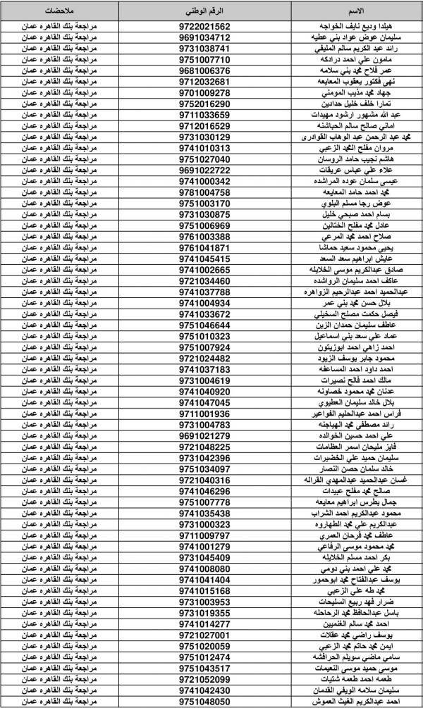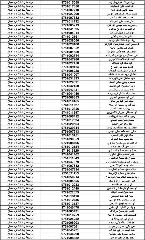 وعلى المستفيدين مراجعة بنك القاهرة عمان وكافة فروعه اعتباراً من صباح يوم الأثنين 4/7/2022 لاستلام قيمة القرض.