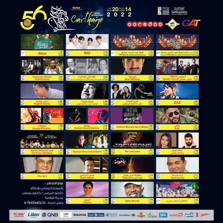 البرنامج الكامل لمهرجان قرطاج الدولي.. شيرين في الختام