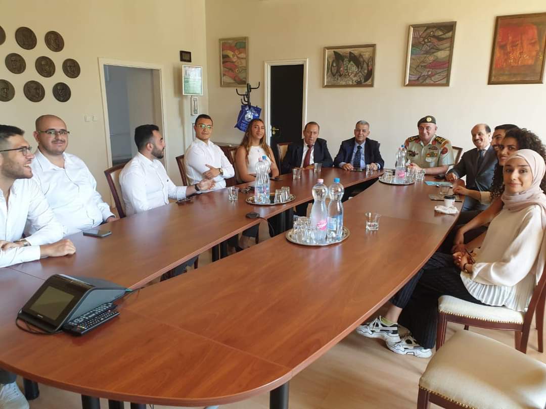 وفي نهاية الزيارة التقى العميد الطبيب زريقات والوفد المرافق الطلاب الاردنيين الذين يدرسون في الجامعة في كليات الطب وطب الأسنان والصيدلة.