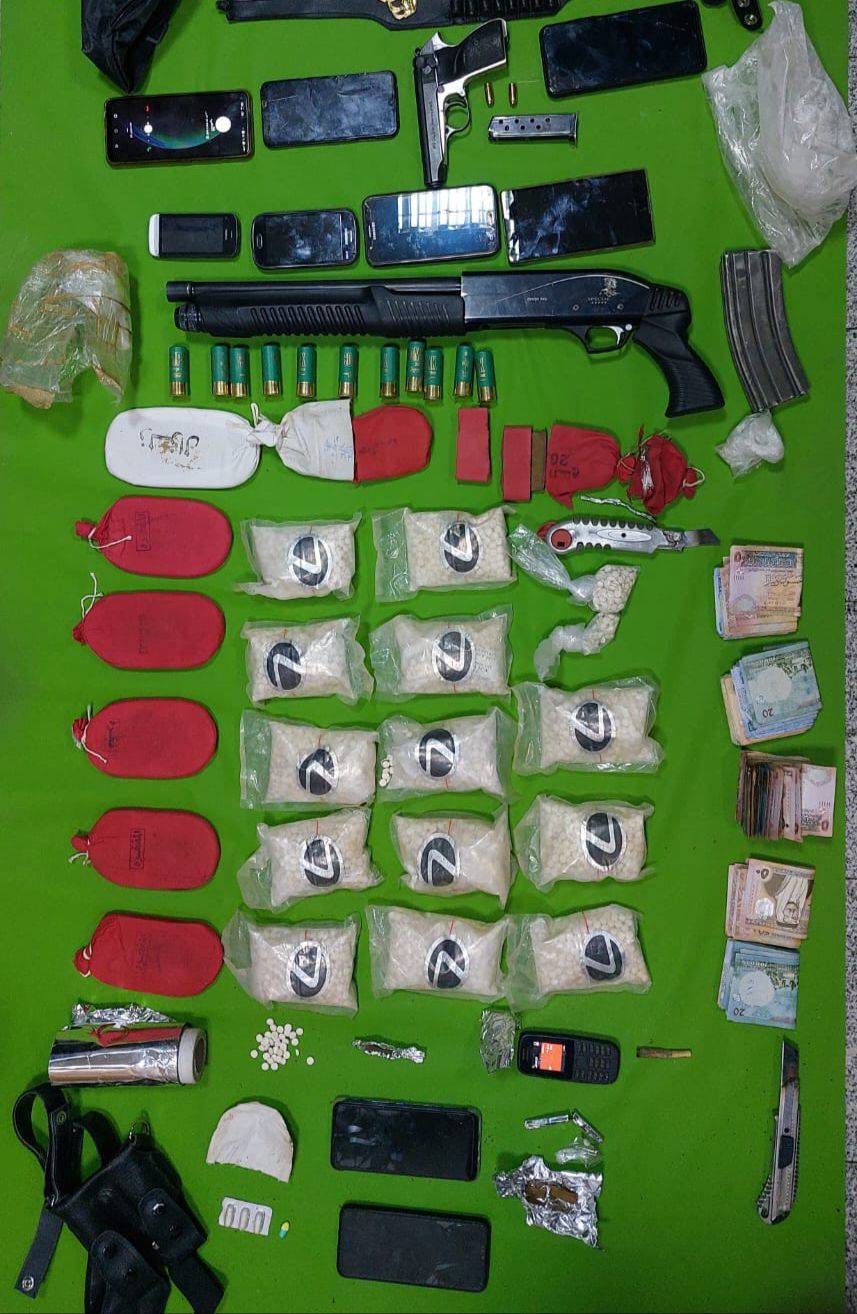 وبين أنه وفي قضية أخرى في لواء الرمثا داهمت قامت قوة أمنية معززة بالفريق الخاص لإدارة مكافحة المخدرات، ألقت القبض على مطلوب بقضايا مخدرات، وبحوزته كميات كبيرة من المواد مخدرة وأسلحة نارية وذخائر، بعد أن قام المحققون في الإدارة بمتابعته وتحديد مكان تواجده.