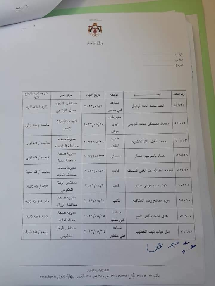 انهاء خدمات 27 موظفا في وزارة الصحة - اسماء