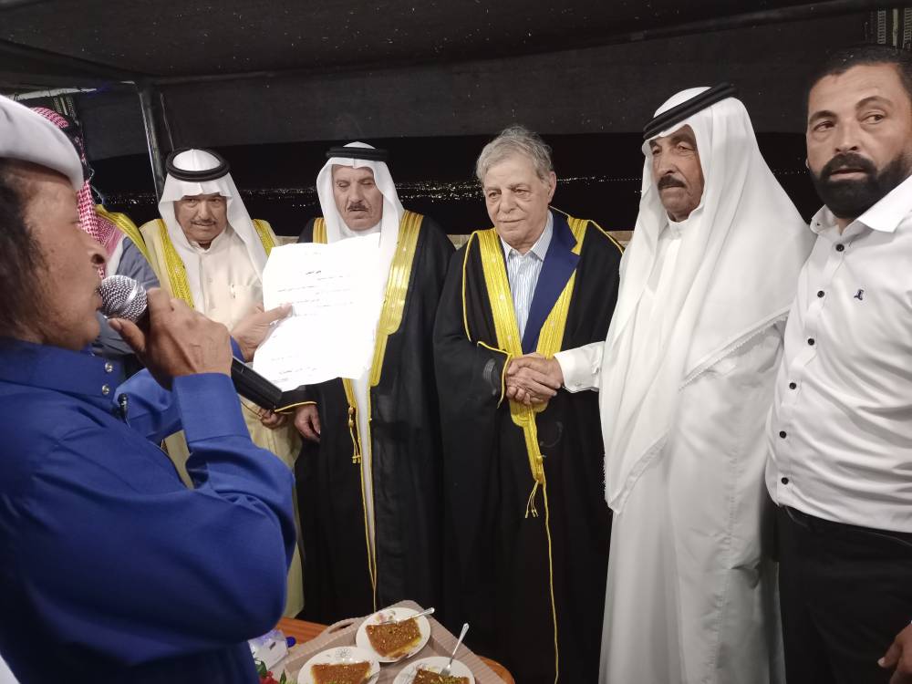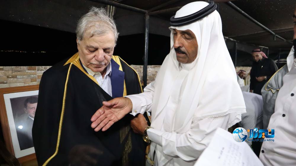 وقدم الشرعة عباءة كهدية رمزية وتعبيرًا صادقًا عن مشاعر الأخوة والود وتقديرًا للخصاونة الذي عرف بالانتماء الصادق والمسؤولية والأمانة .