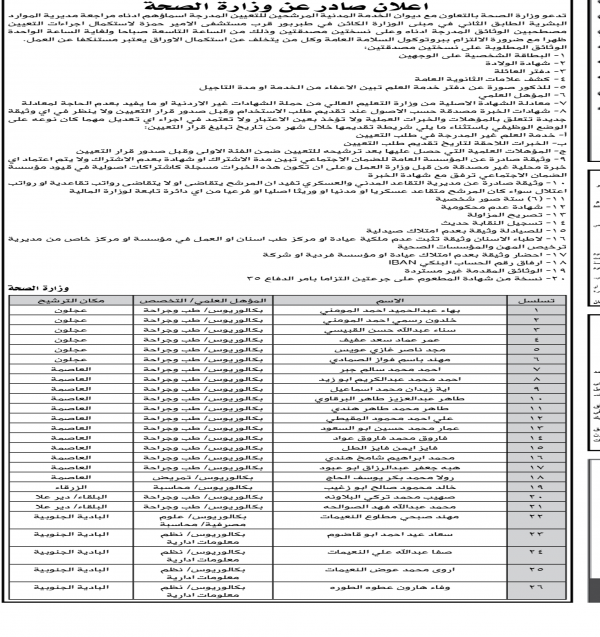 مرشحون للتعيين في الصحة (أسماء)