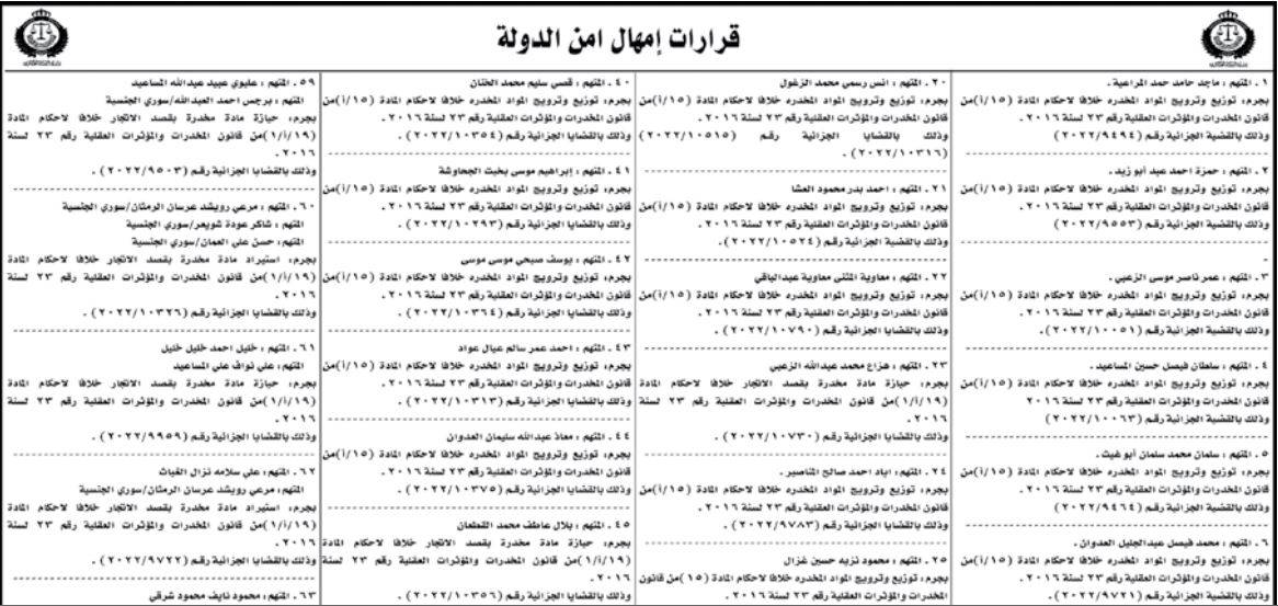: أمهلت محكمة أمن الدَّولة، متهمين 10 أيَّام لتسليم أنفسهم للسلطات المختصة لمحاكمتهم على التهم المسندة إليهم، وإلا سيتم اعتبارهم فارين من وجه العدالة.