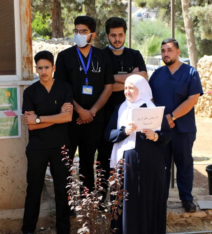 وعبّر فريق المُقيّمين لفعاليّات التمرين ممثّلاً بالرائد أحمد القضاة والرائد حازم الجمل والملازم علي الحوامدة، عن إعجابهم بالمستوى المتطور الذي يتمتّع به كادر المستشفى في التعامل مع الحالات الطارئة الذي ظهر جليّاً من خلال تنفيذهم للتمرين الذي استغرق حوالي (دقيقة و46 ثانية).