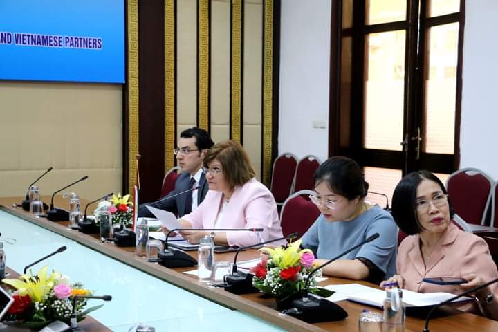 نظمت السفارة المصرية في فيتنام ندوة افتراضية بين وفد من الهيئة العامة للمنطقة الاقتصادية لقناة السويس برئاسة اللواء بحري محمد برايا، نائب رئيس الهيئة العامة للمنطقة الاقتصادية لقناة السويس، ووفد من وزارة النقل الفيتنامية برئاسة نائب وزير النقل الفيتنامي "لي دينه ثو"، وشاركت السفيرة أمل سلامة، سفيرة مصر في فيتنام في الاجتماع من مقر وزارة النقل الفيتنامية.