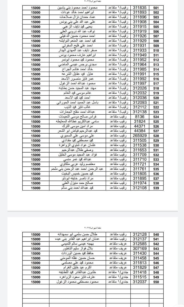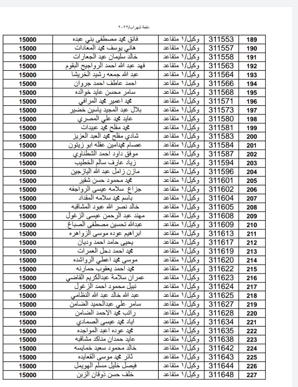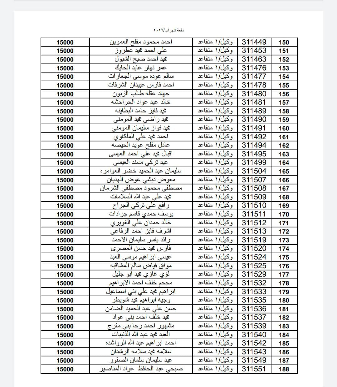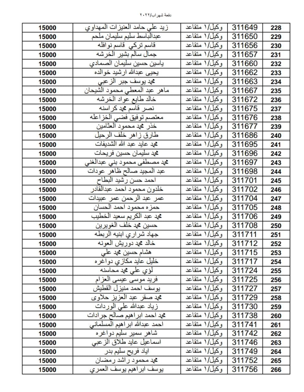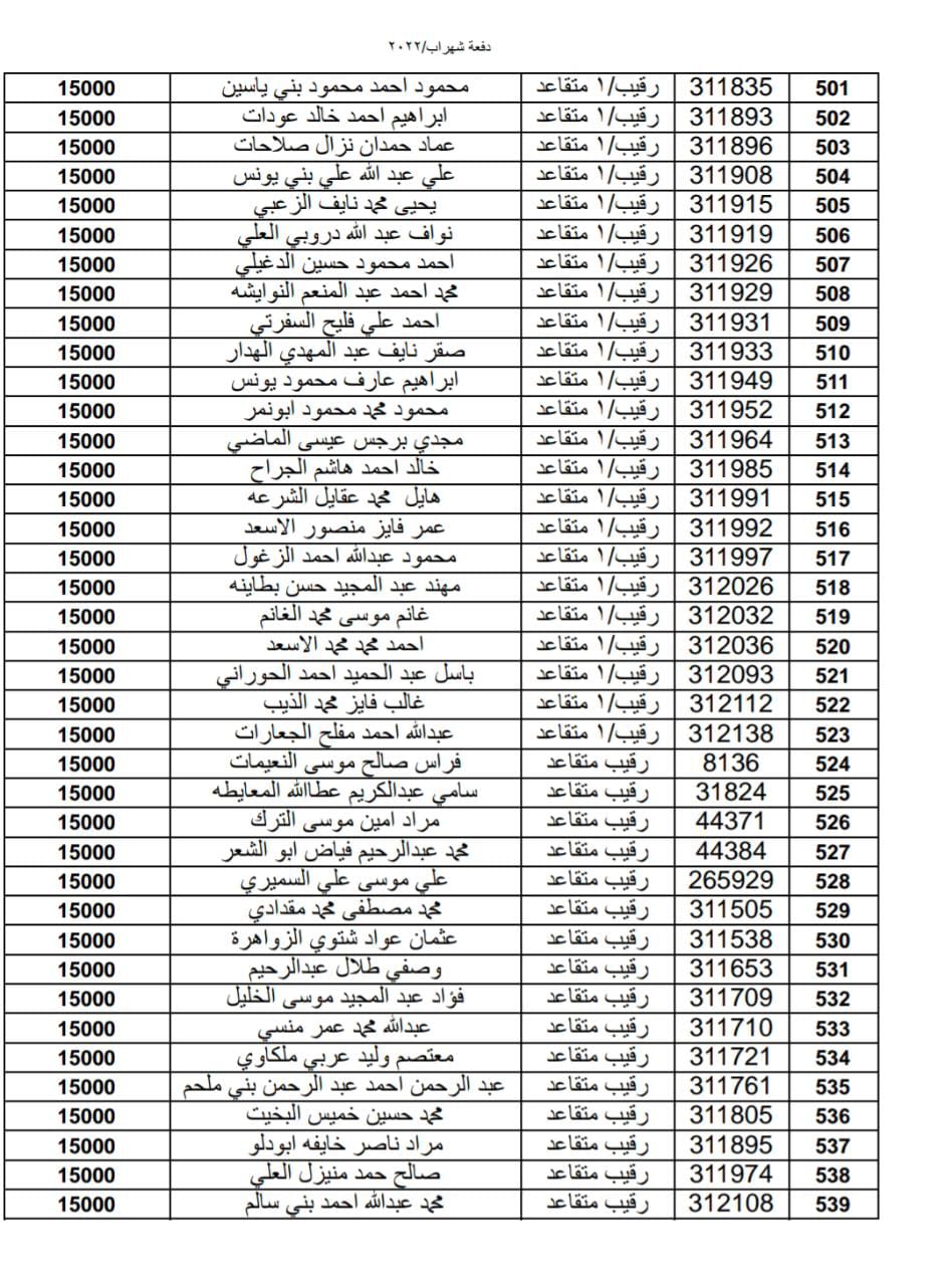 تعلن القيادة العامة للقوات المسلحة الأردنية_ الجيش العربي/ مديرية مؤسسة الإسكان والأشغال العسكرية بأن الضباط وضباط الصف والأفراد المبينة أسمائهم أدناه قد استحقوا قرض الإسكان العسكري وعلى الضباط المستفيدين من صندوق إسكان الضباط مراجعة مديرية الإسكان والأشغال العسكرية خلال ساعات الدوام الرسمي اعتباراً من يوم الأحد الموافق 31/7/2022 للحصول على القرض والضباط وضباط الصف والأفراد المستفيدين من صندوق الإسكان العسكري (الخاص بالأفراد) سيتم تحويل قيمة قرض الإسكان إلى بنك القاهرة عمان لمتابعة الموقع الإلكتروني للقوات المسلحة الأردنية لمعرفة أسماء المستحقين الذين سيتم تحويل قيمة قروضهم للبنك.