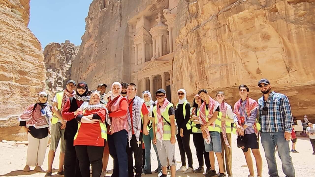 وقال رئيس الجمعية سائد الشريدة أن الزيارة جاءت للتأكيد على هدف  الجمعية وهو دمج متلازمة داون في المجتمع عن طريق التوعية السياحية  التي حضرت عن طريق  جسر الملك حسين وقام السيد حسام كروان، بتوفير الإقامة بفندق الديز ان مشيرا بان للوفد قام بجوله في العاصمه عمان وبالتنسبق مع مدير آثار العاصمه السيد عاصم عصفور شملت جبل القلعه والمدرج الروماني واحتضنت عاصمة السباحة محافظة مادبا ضيوف الاردن واستقبالهم من خلال ضابط الارتباط رياض الوخيان ومدير مركز الزوار  وائل الجعانيني والدليل السياحي محمد العتيبي وقام الوفد الفلسطيني بجوله سياحية مميزة في شارع السياحه وعيون موسى وفي جبل نيبو حيث كان الاب عمار في استقبال الضيوف وقدم للوفد الضيف شرحا عن الكنيسة والمكانه الروحانية للمكان..وكان للمثلث الذهبي نصيب في استضافة الوفد الفلسطيني وبالتنسيق مع سليمان الفرجات رئيس سلطة إقليم البتراء ومدير مركز الزوار في البتراء  ياسين السعيدات الذي قدم كل التسهيلات للوصول إلى الخزنه ...إلى أن وصل الوفد إلى وادي رم في مخيم الوان الغروب لصاحبه الدكتور عبدالباسط روبين الذي رحب بضيوف الاردن وانتهى بهم الرحال في محافظة العقبه بترحيب ومتابعه من الجهات الأمنية ممثلة بمدير شرطة النجدة النقيب حازم الفضول الذي تابع الضيوف ...وكان لهم في العقبه وبالتنسبق مع ضابط ارتباط الهدب هاشم السطوحي الذي  جهز العديد من الفعاليات منها جولة في القوارب والباص المكشوف .. والعودة إلى عمان ..ليعود الوفد إلى فلسطين مع الصديق احمد ابو مرة