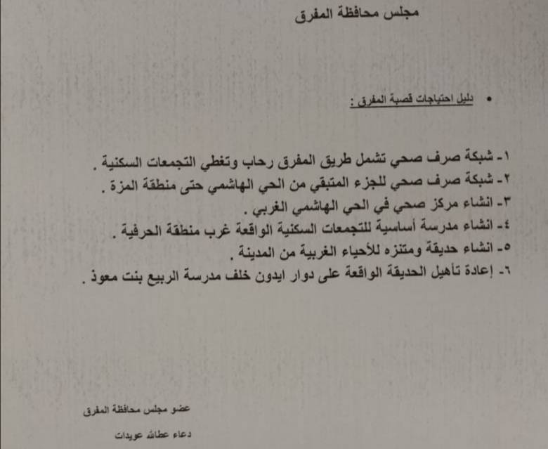 مطالبات تمس احتياجات المواطن من عضو مجلس محافظة المفرق "دعاء العويدات"