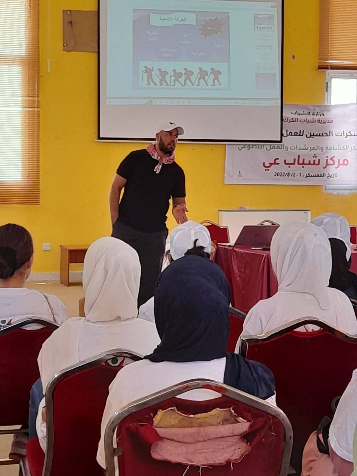 ووضح المدرب أيمن الشواوره مفهوم الحركه الكشفية ونشأتها وتضمن المعسكر أعمال تطوعيه عديده وتدريبات كشفيه وصيحات وكان الهدف من المعسكر تنمية مواهب وقدرات الشباب وصقلها وتزويدهم بالمعلومات المناسبة عن الكشافة وتوعيتهم بحقوقهم الأساسية .