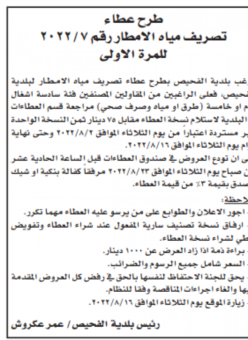بلدية الفحيص بحاجة لتصريف مياه الامطار