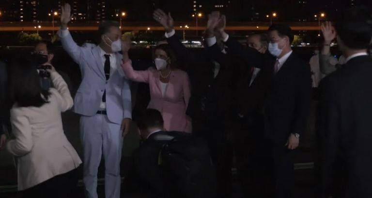 حطت طائرة رئيسة مجلس النواب الأمريكي نناسي بيلوسي في مطار تايوان في زيارة حذرت الصين من الإقدام عليها.