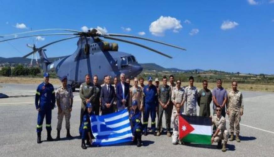 بتوجيهات ملكية سامية أوعز رئيس هيئة الأركان المشتركة اللواء الركن يوسف أحمد الحنيطي بإرسال طائرة من سلاح الجو الملكي الأردني نوع MI 26 مزودة بطاقم مكون من 16 فرداً للمشاركة في مكافحة حرائق الغابات في اليونان.