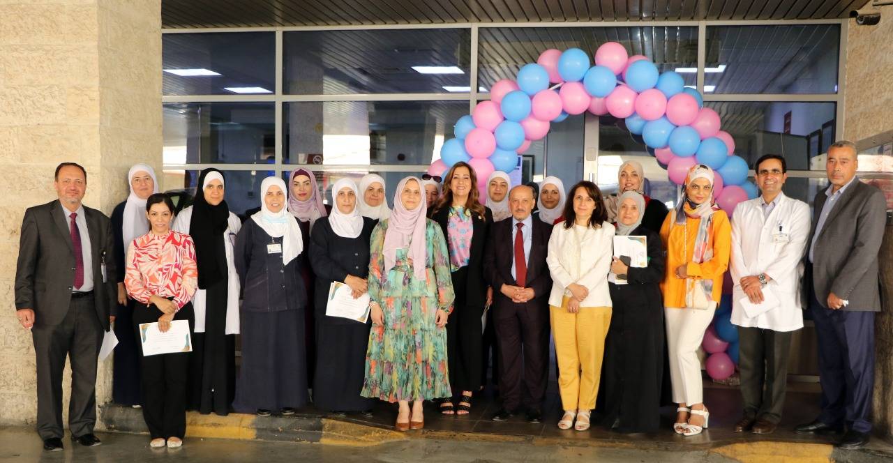 من جانبها، أشادت مديرة دائرة النسائية والتوليد الأستاذ الدكتورة أسماء الباشا بالدور المميز والرائد الذي يضطلع به المستشفى وكوادر على اختلاف مسمياتهم في دعم وتثقيف السيدات الحوامل، مؤكدةً على أن المستشفى وعلى مدار السنوات القليلة الماضية عمل على بناء قدرات الكوادر الصحية الطبية والتمريضية في قسمي النسائية والتوليد وطب الأطفال من خلال دورات ومحاضرات تعليمية وتثقيفية بالتعاون مع لجنة الرضاعة الطبيعية وممثلي الأقسام ذات العلاقة، متعهّدةً بالاستمرار في تدريب وتطوير الكوادر في مجال رعاية الأمهات والأطفال، مضيفةً بأن قسم النسائية والتوليد في المستشفى يعمل على تقديم التوعية والتثقيف للأمهات في العيادات وغرف الولادة وما بعد الولادة.