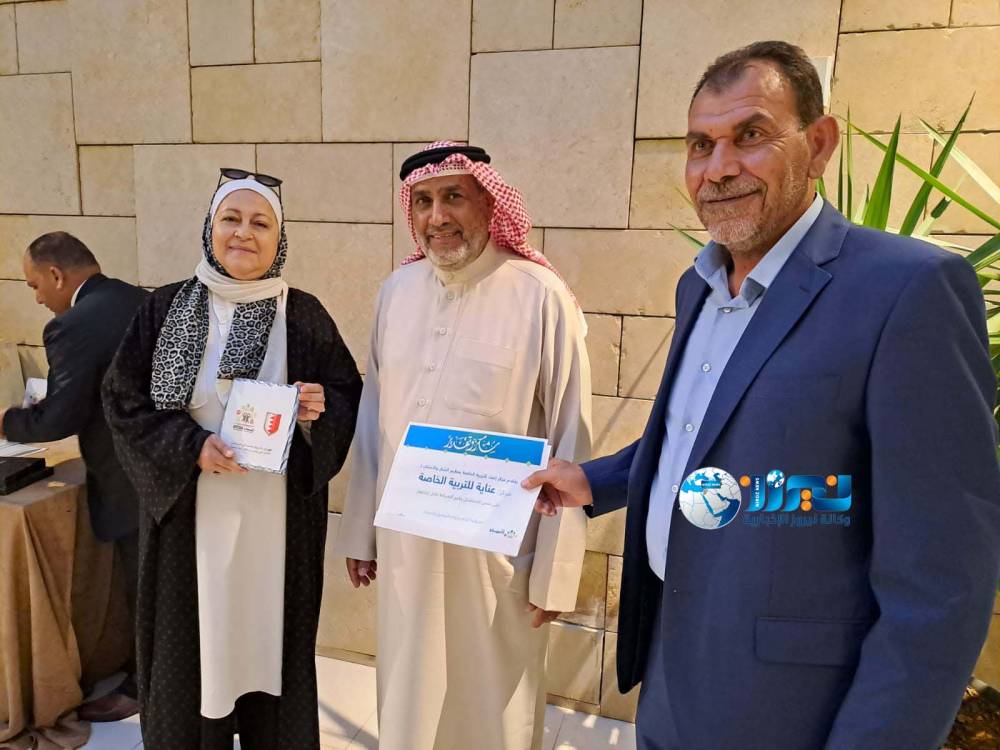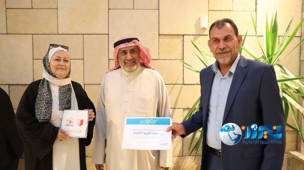 بحضور سفير مملكة البحرين لدى المملكة الأردنية الهاشمية  أحمد يوسف الرويعي  رئيس مجلس إدارة مركز إنماء التربية الخاصة عبد الرحمن بن جاسم الغانم  مع مؤسسة فلسطين الخير ممثلة بالمديرة رولا سلامة وذلك لتقديم التدريب الفني والمهني للعاملين باستخدام البرامج والتطبيقات الالكترونية .