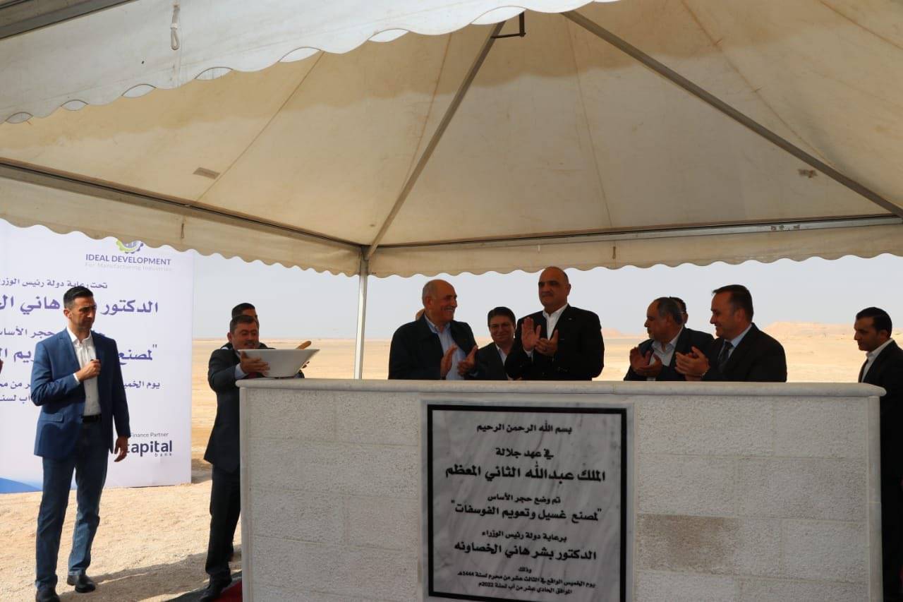وضع رئيس الوزراء الدكتور بشر الخصاونة حجر الأساس لمصنع غسيل وتعويم الفوسفات في منطقة الشيديَّة بمحافظة معان.