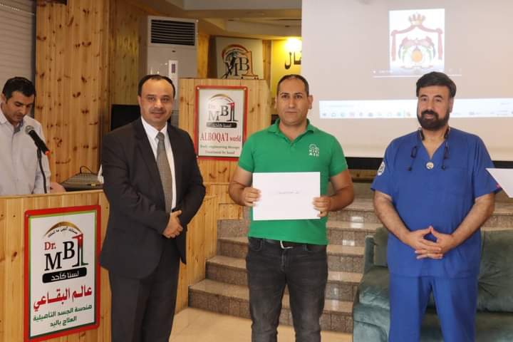 من جهته أشاد راعي الحفل العقيد عمر الجبور، بجهود عالم البقاعي وبإعجابه الكبير بمستوى الخدمات التأهيلية المقدمة للحالات التي تتلقى العلاج فيه، مقدما شكره للدكتور البقاعي على الإستضافة والجهود الكبيرة التي قدمها لإنجاح برامج الدورة.