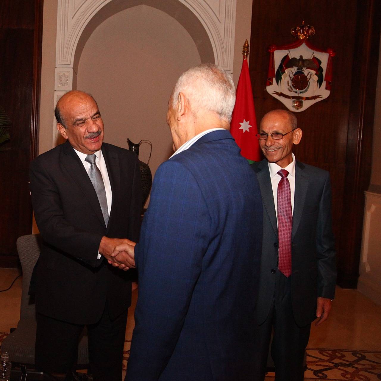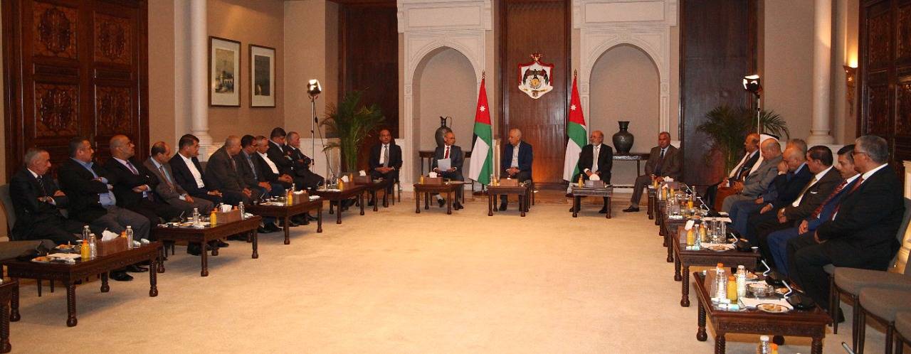 التقى رئيس الديوان الملكي الهاشمي يوسف حسن العيسوي اليوم السبت في قصر بسمان الزاهر مجموعة من وجهاء وشيوخ ورؤساء مؤسسات المجتمع المحلي وأعضاء اللامركزية وووجهاء مدينة سحاب برئاسة عواد نواف ابوزيد رئيس ديوان عشائر سحاب