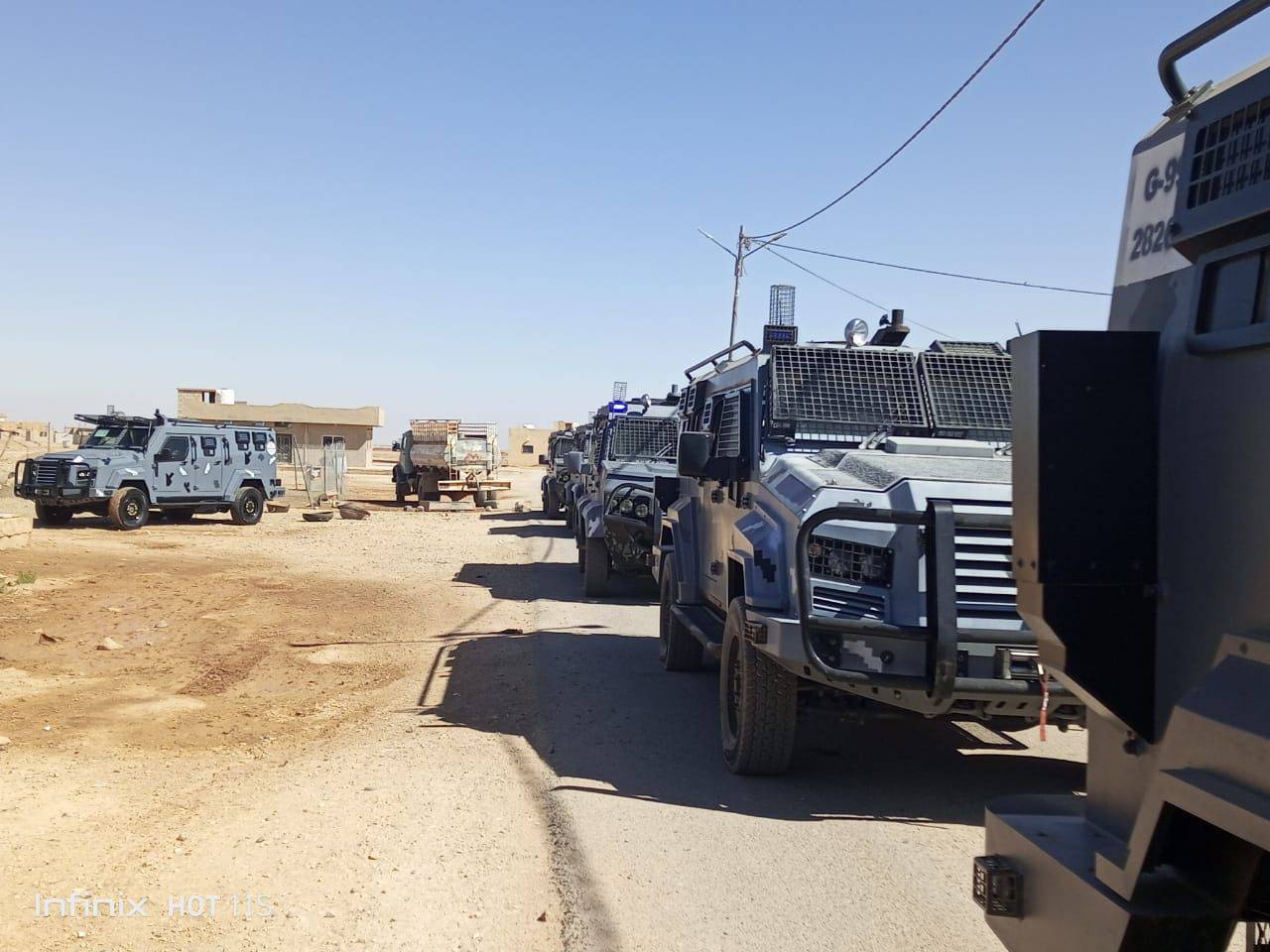 وتتواجد الآن قوة أمنية عالية الجاهزية في مناطق البادية الشمالية الشرقية لتنفيذ عمليات بحث وتفتيش ومداهمات، للقبض على تجار المخدرات ومروجيها، والخارجين عن القانون
